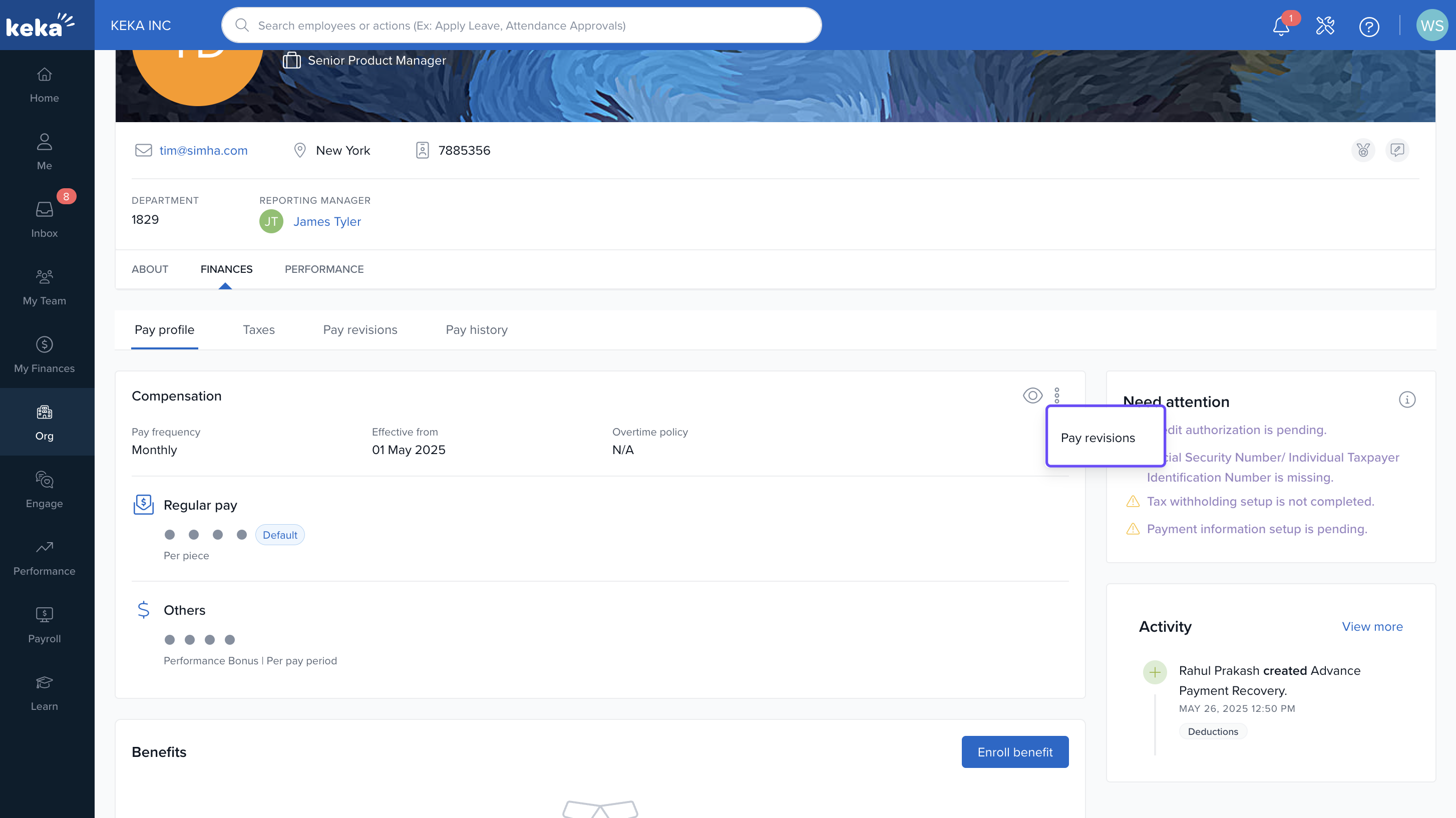 Click the three dots (⋮) and select Revise Salary to make updates.
