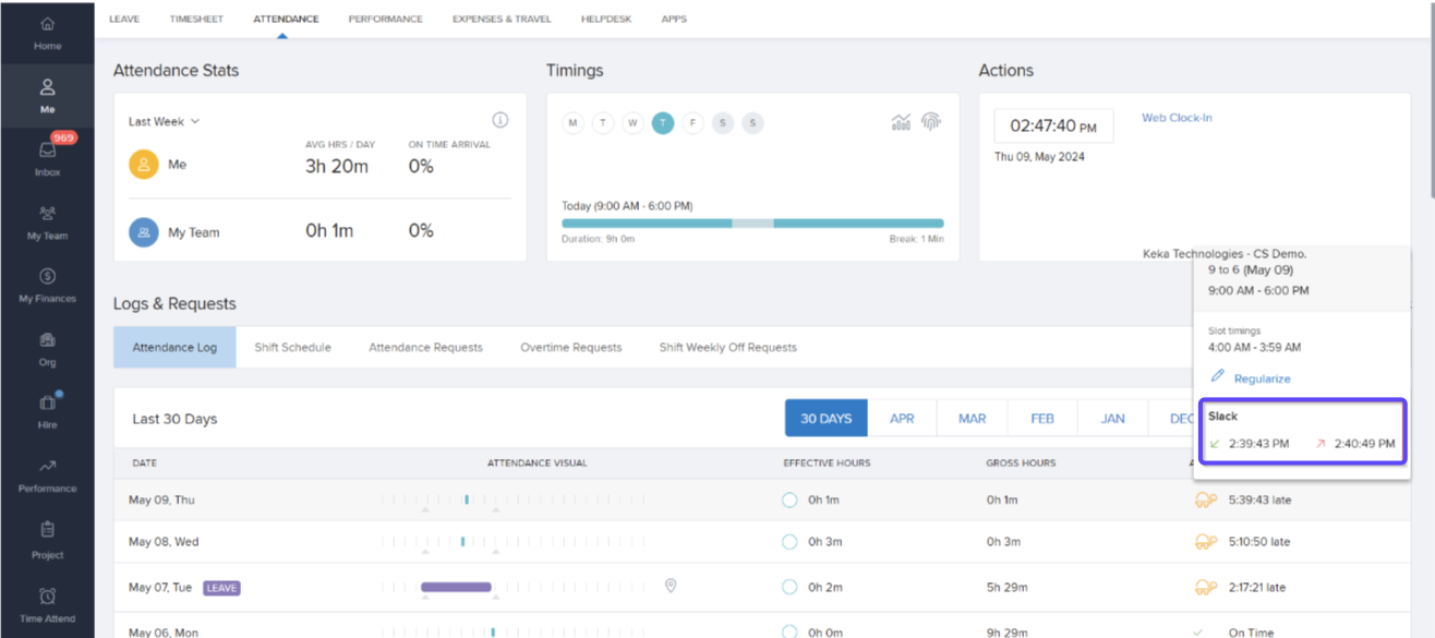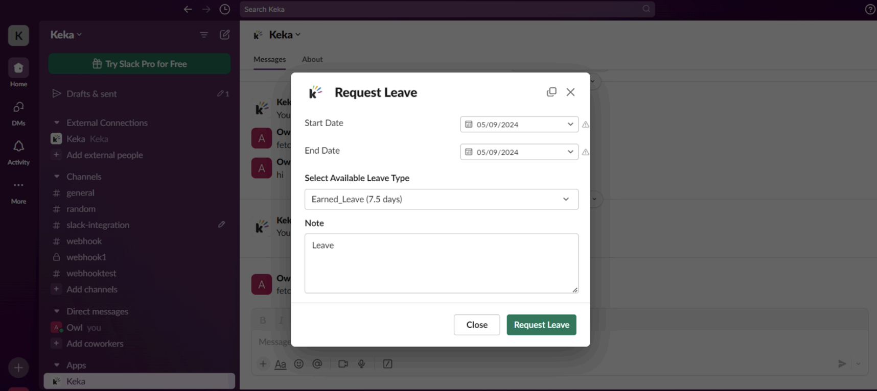 Switching between apps to track hours or apply for leave can slow your team down. With Keka’s Slack Integration, employees can clock in/out, apply for leave, and check balances—all without leaving Slack. This makes attendance and leave management seamless and efficient.