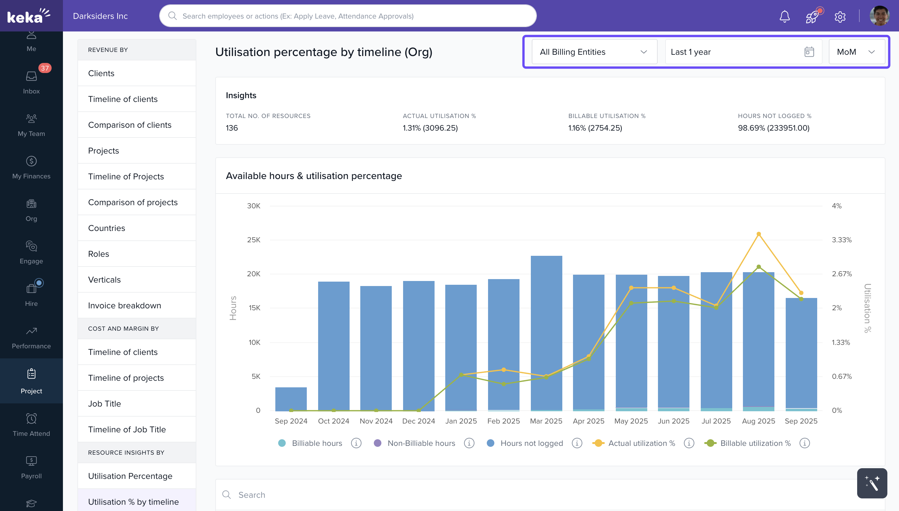 - Choose the billing entity and a timeline (MoM, QoQ, YoY).