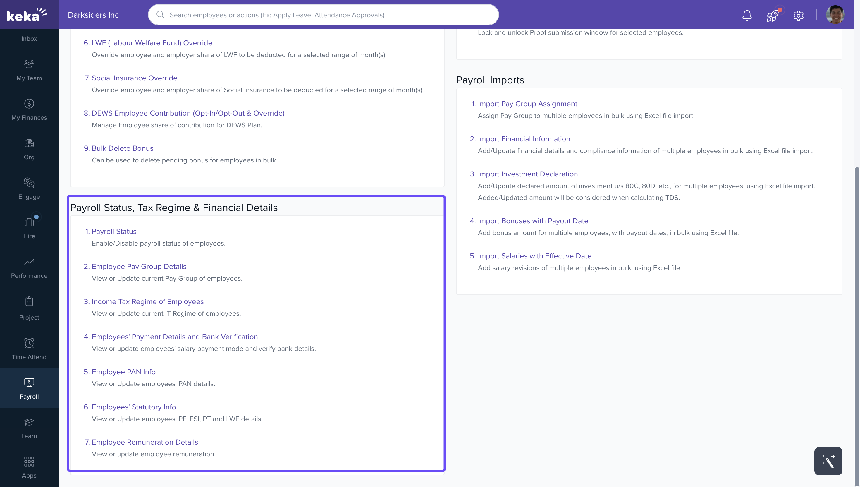 This guide shows how to enable or disable an employee’s payroll status in Keka. Payroll status controls whether an employee is included in a payroll run, whether they can view financial details, and whether pending payments (from previous months) are considered.