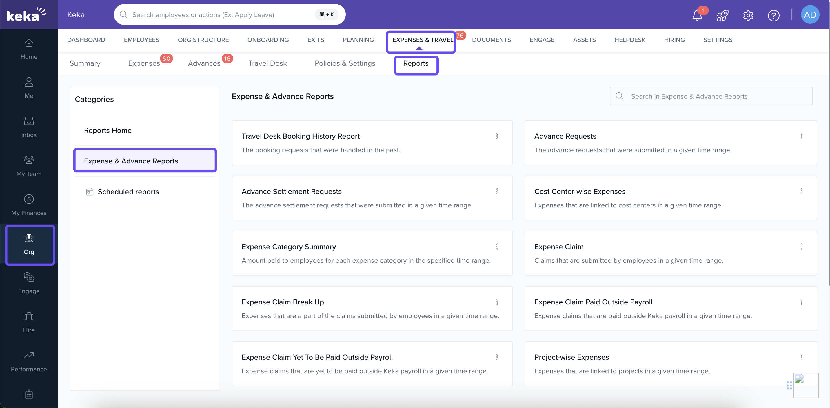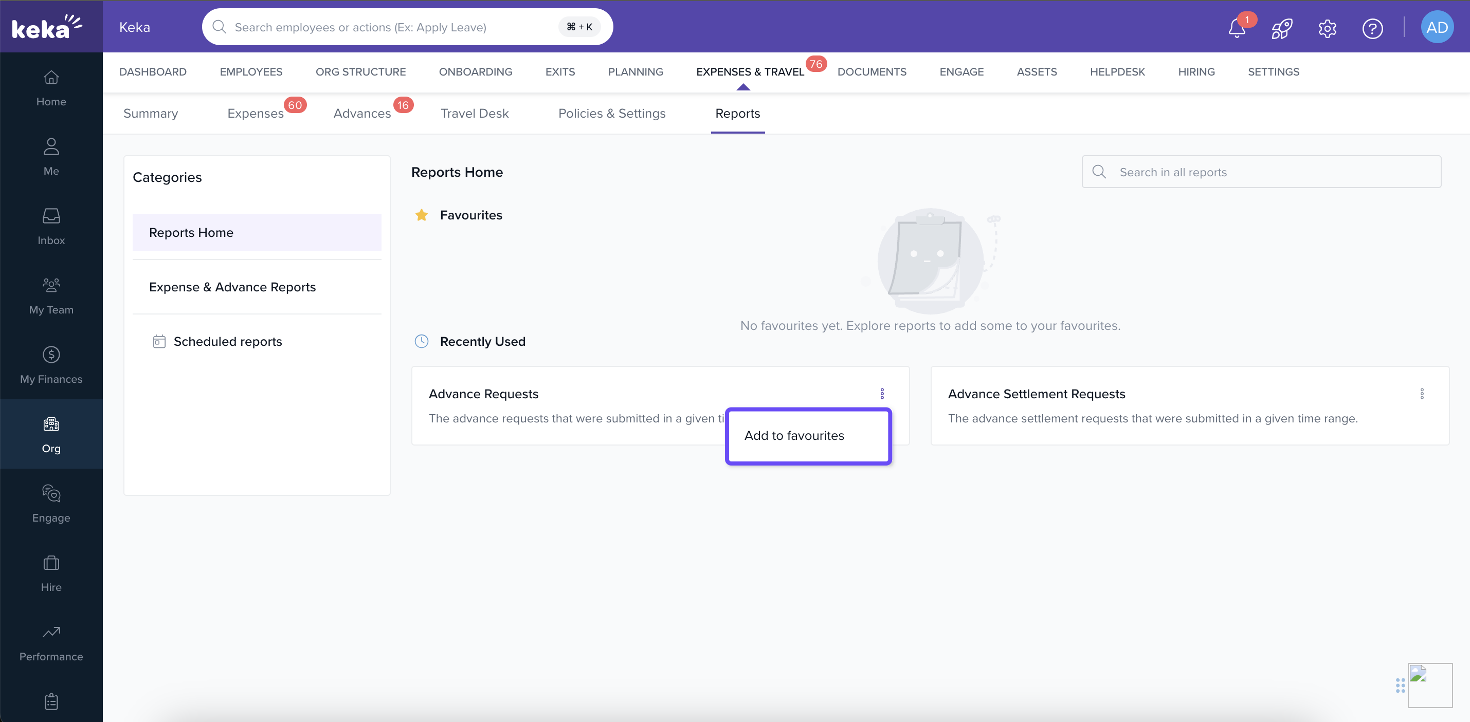 Keka’s Expenses & Travel Reports do more than provide downloadable data—they help you build a habit of proactive financial oversight. With 10 report types, filters for pinpointing trends, and options to favorite or schedule reports, staying on top of business expenses has never been easier.