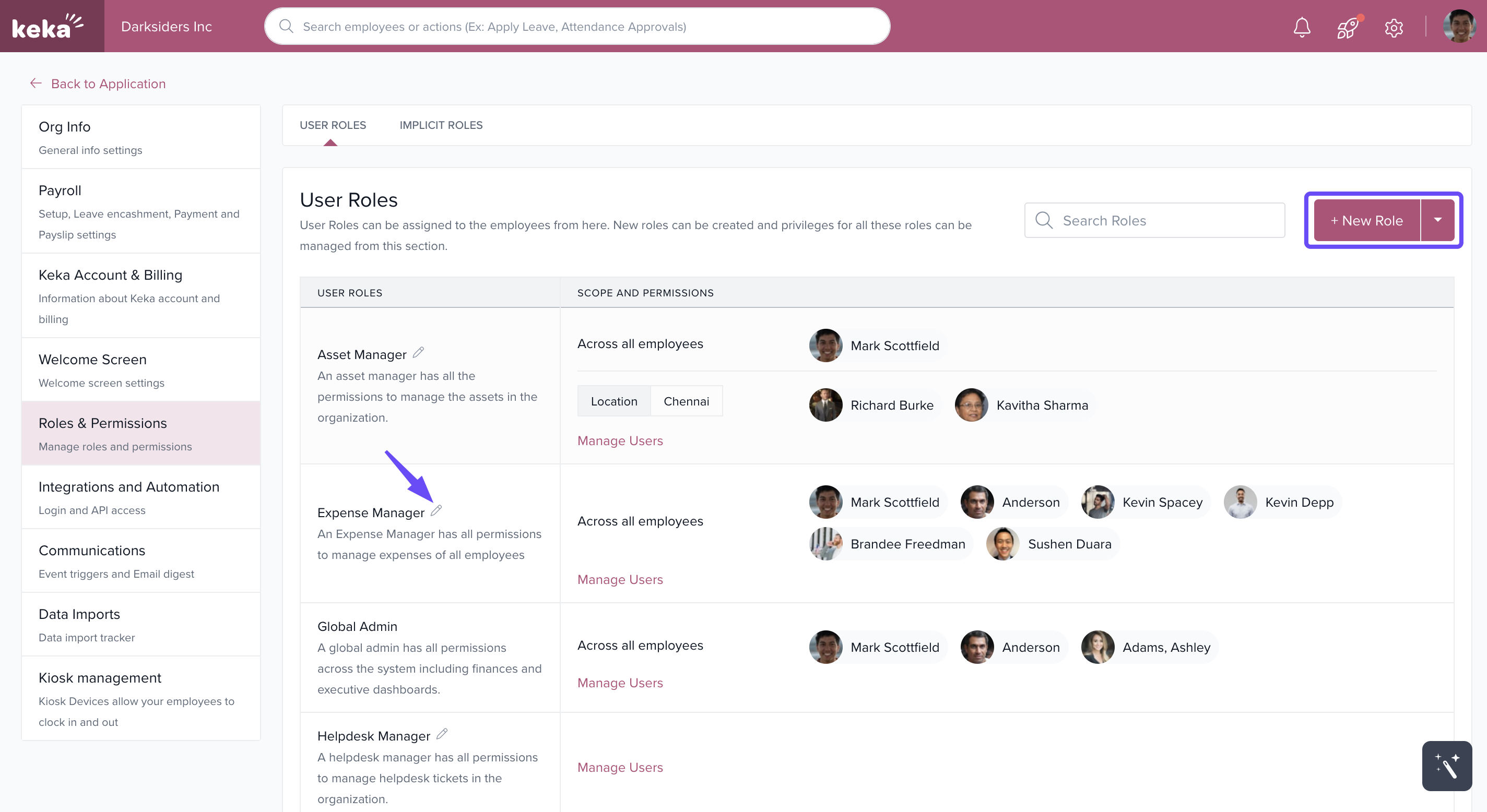 To add a new role, click + New Role.