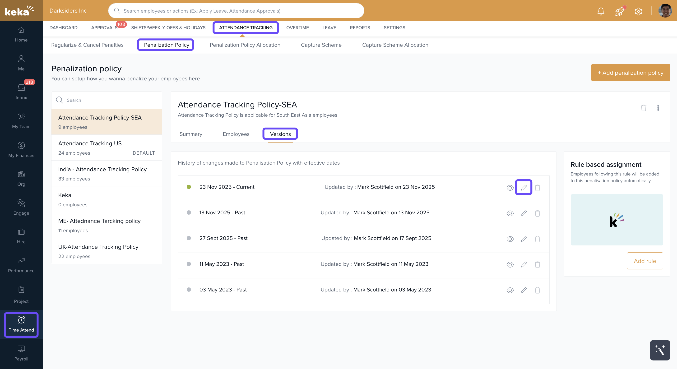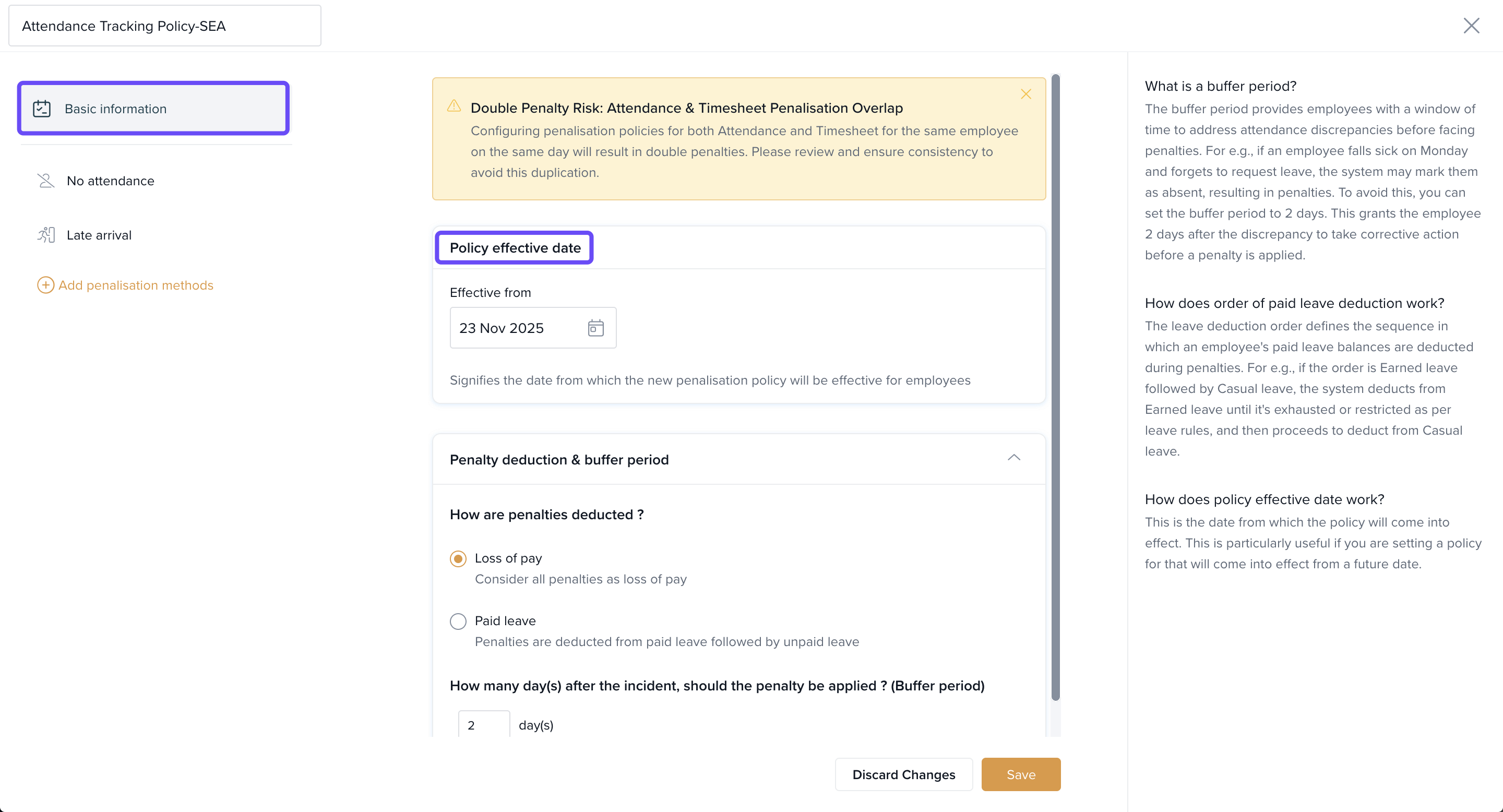Important: These settings will apply to all employees under the selected penalisation policy. Make sure the policy aligns with your internal rules and guidelines.