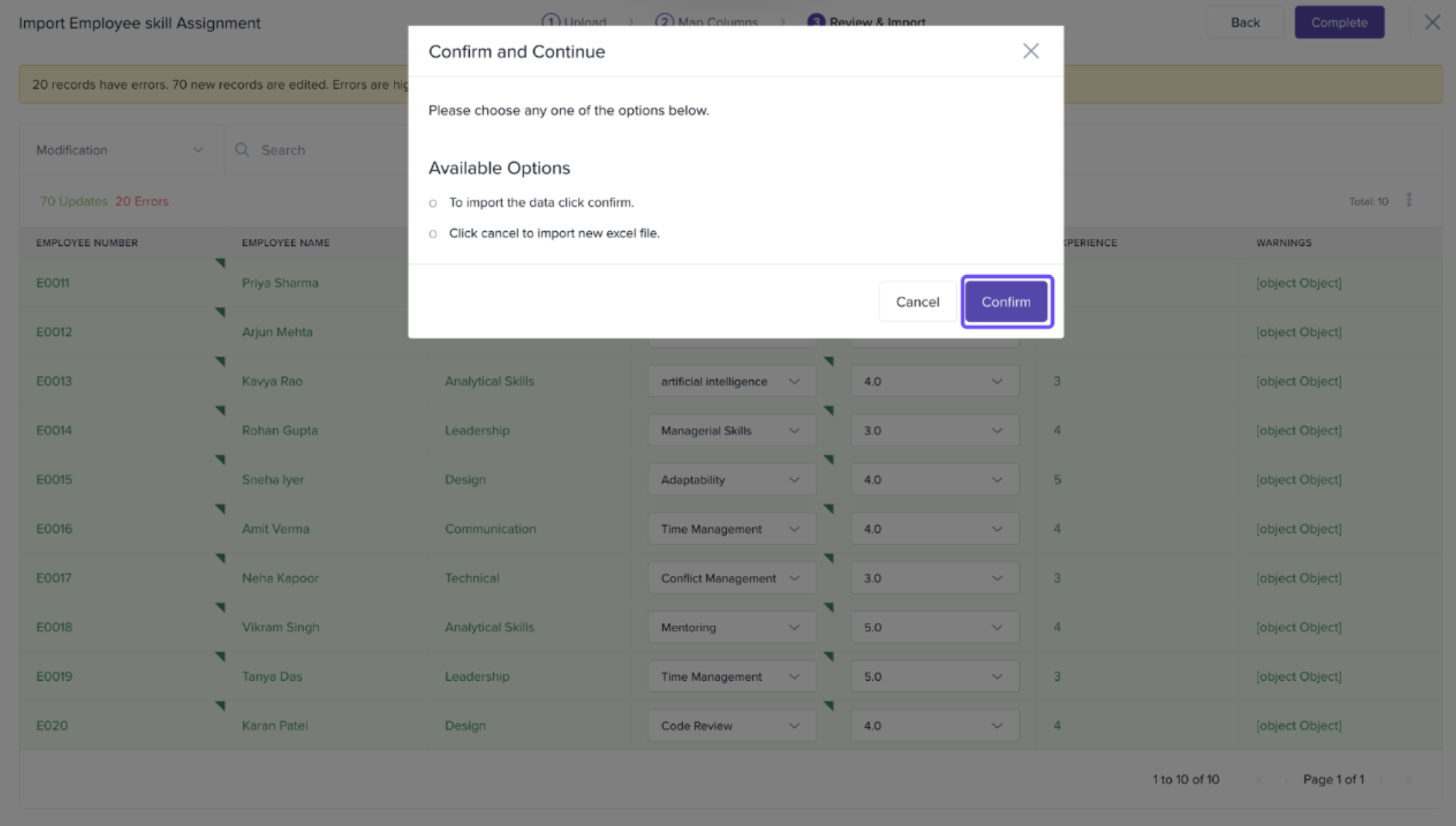 Employee skills will be successfully updated or assigned in bulk, streamlining your skill management process.