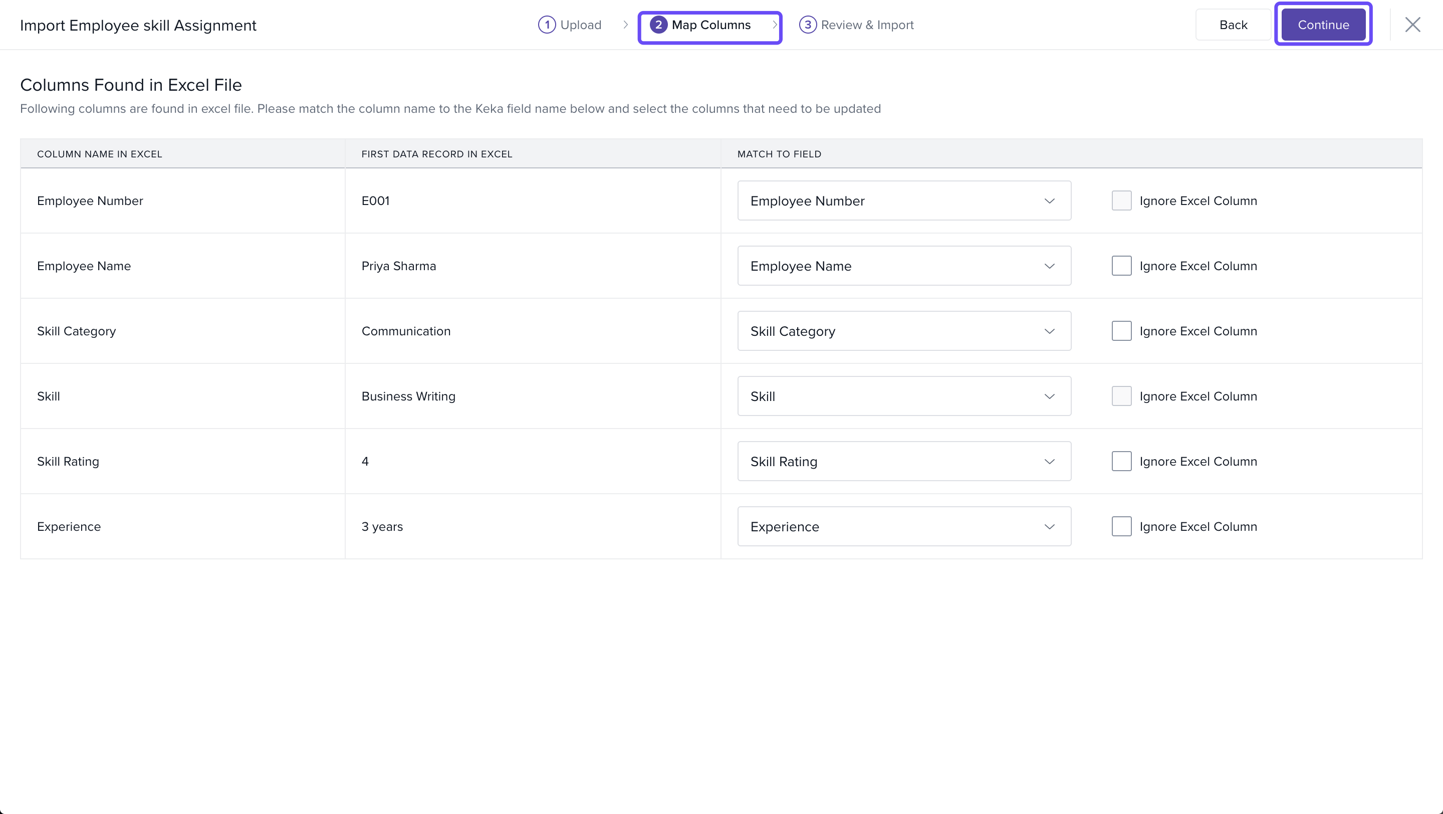 Managing skills across a large workforce doesn’t have to be tedious. Keka makes it easy to assign or update employee skills in bulk using a simple Excel import—saving time and ensuring consistency.