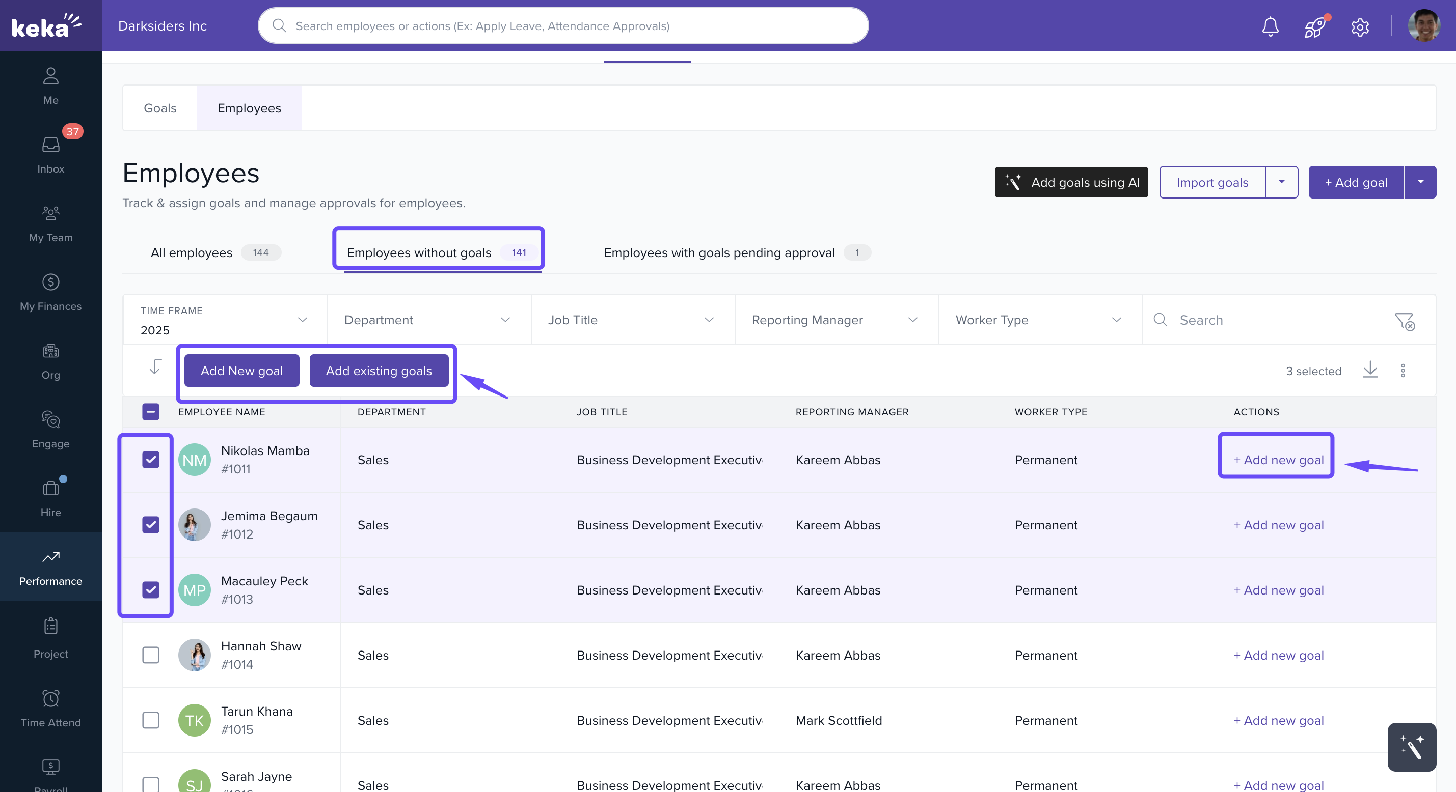 Onboarding: Assign predefined goals in bulk to new hires for consistency.