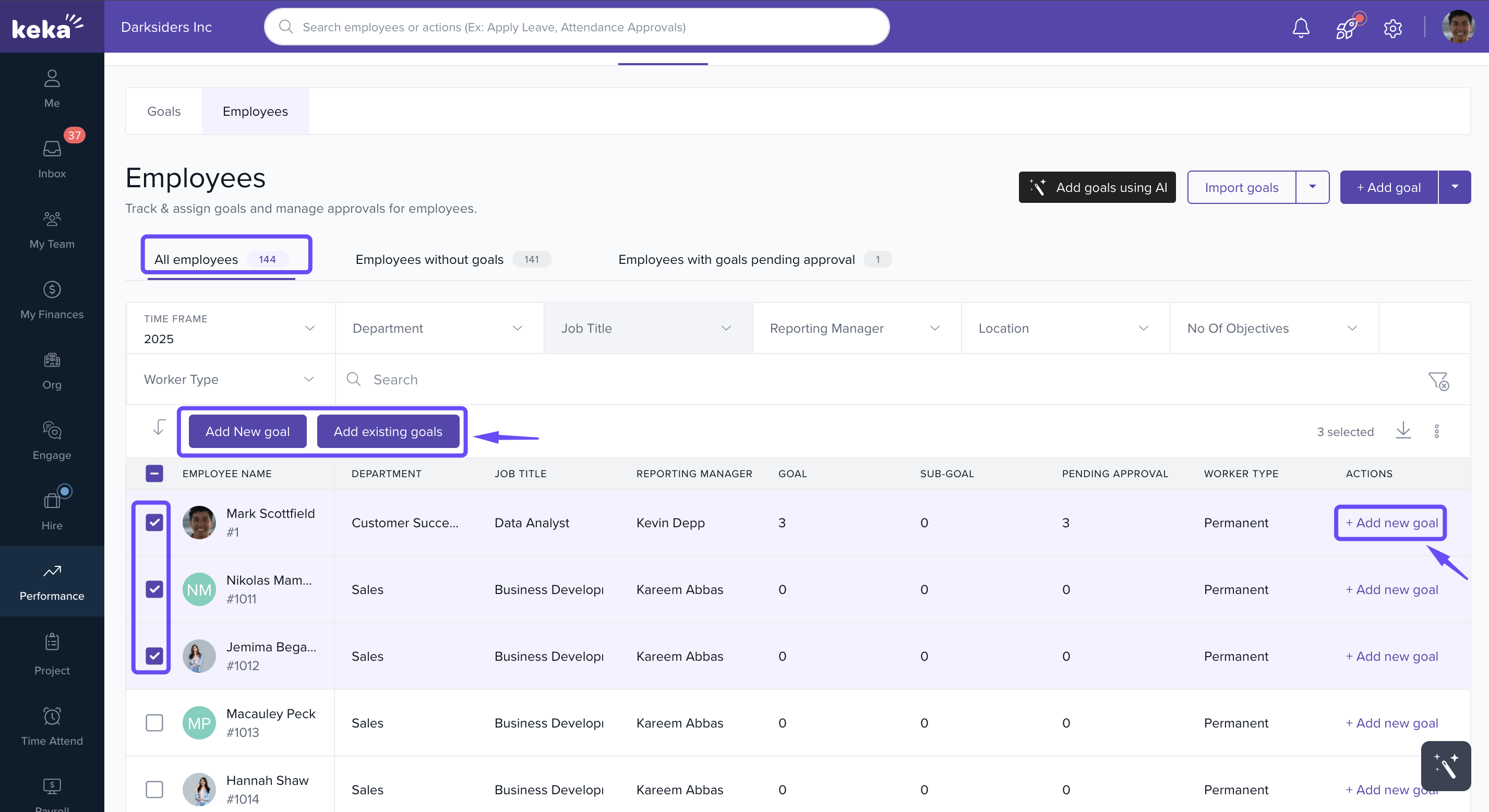 The Manage Goals section in Keka gives HR teams and managers complete visibility and control over employee objectives. By actively using its feature like tracking unaligned or pending goals, assigning objectives in bulk, and monitoring employee progress, you can keep your workforce aligned, improve accountability, and ensure organisational goals are met efficiently.
