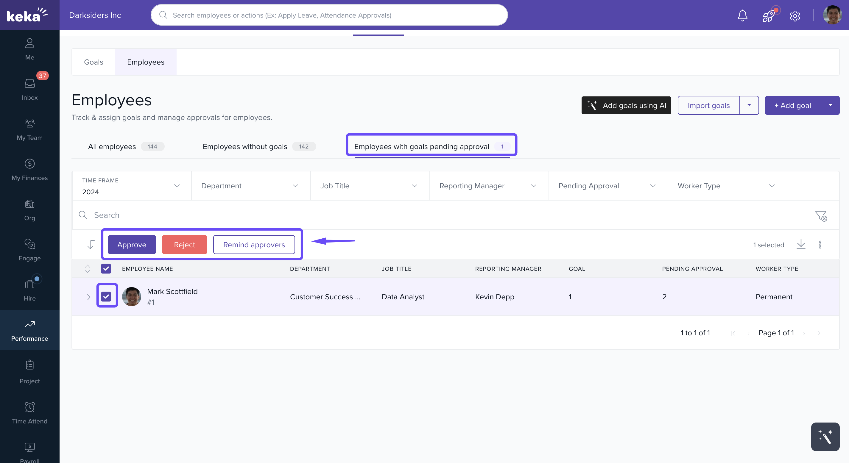 Review, approve, or reject goals directly.