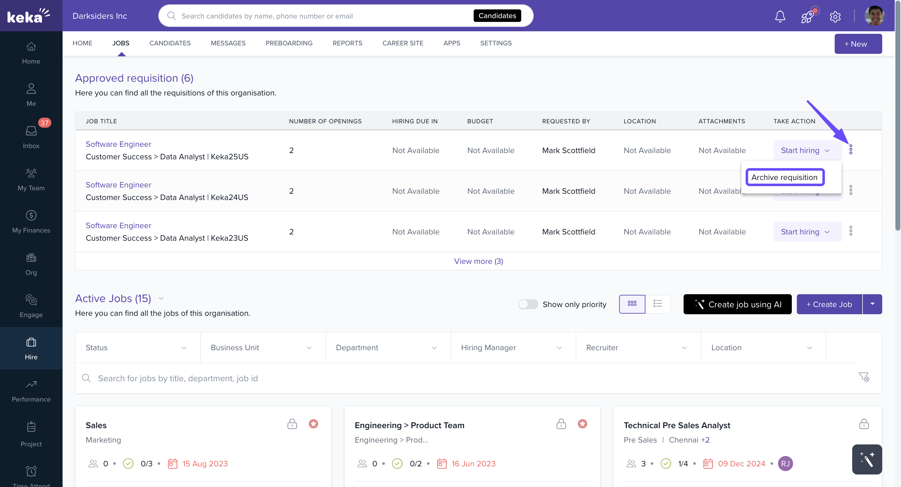 This guide explains how to view and manage requisitions in Keka Hire, including starting the hiring process and archiving requisitions.