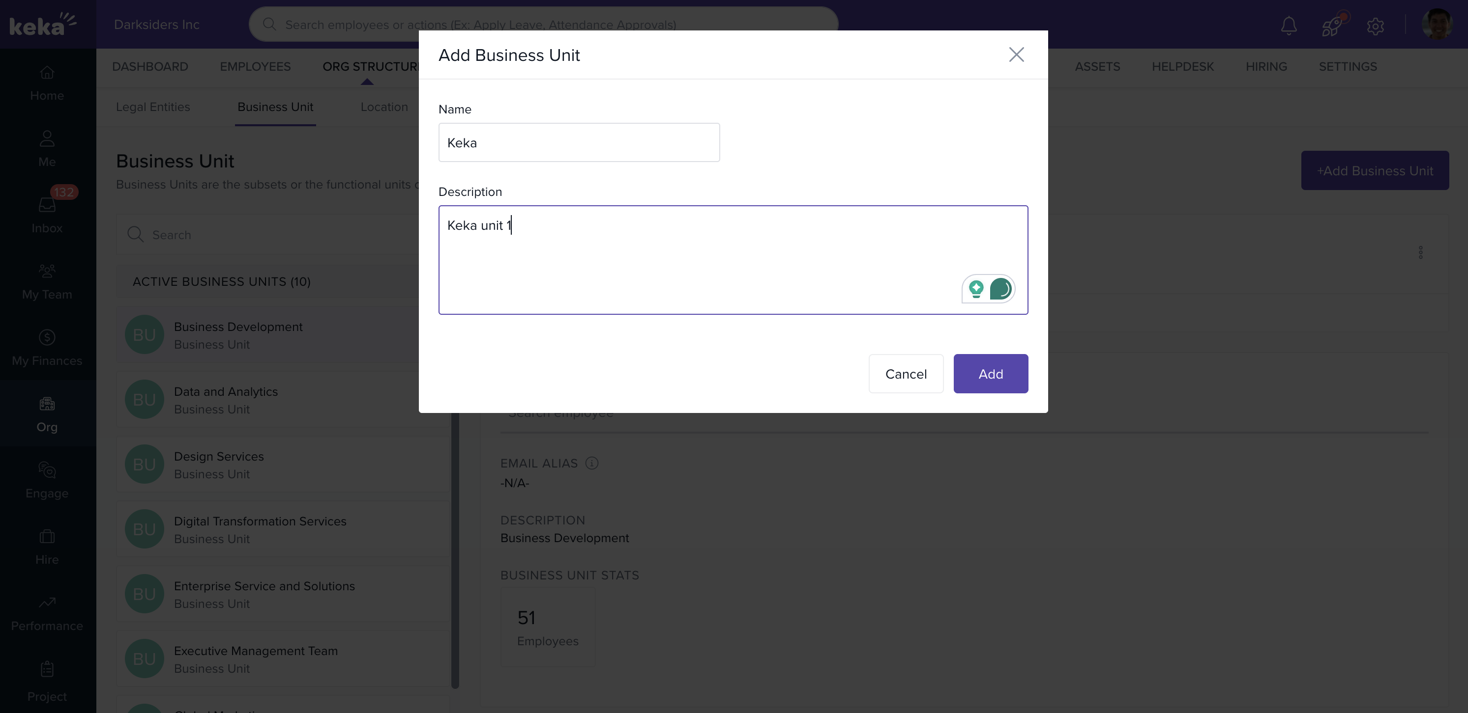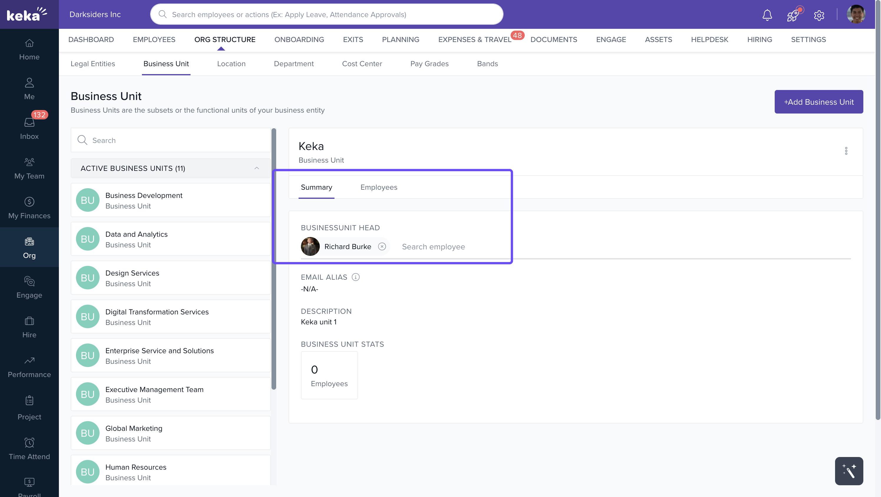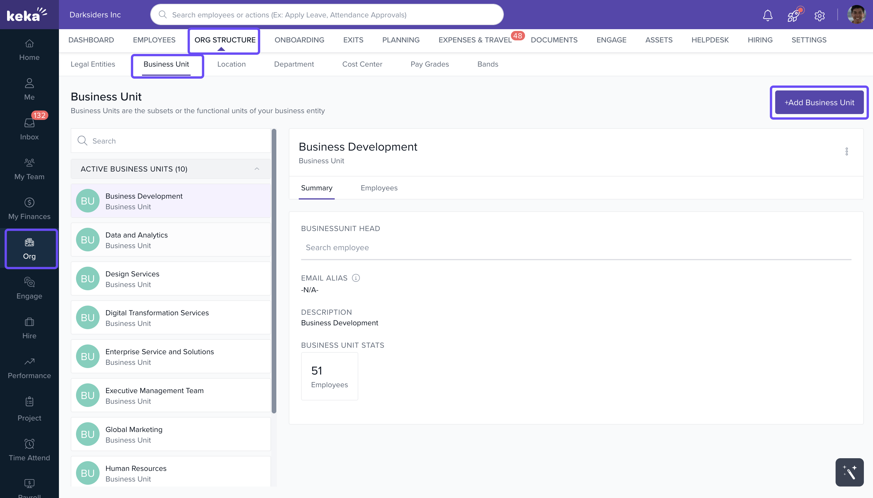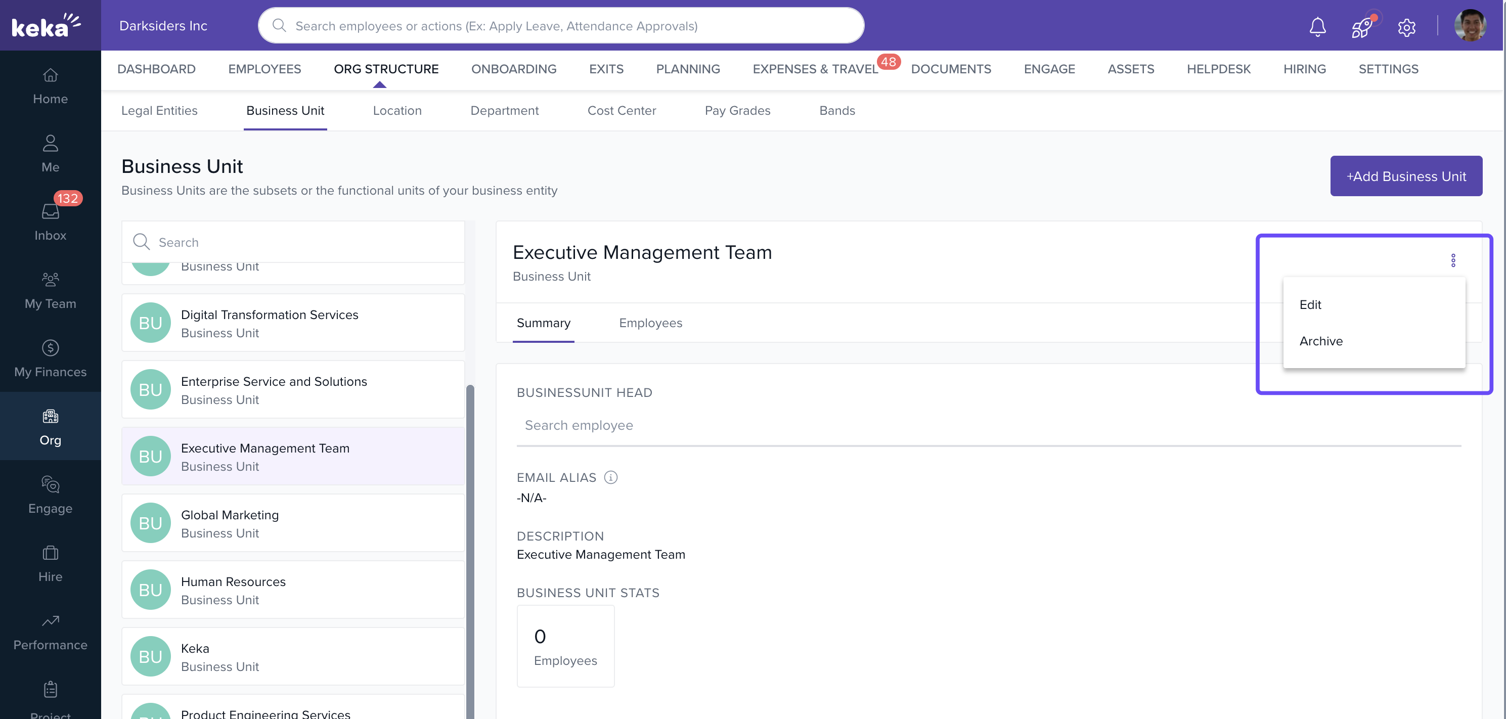 Keka allows you to create and manage business units for different segments of your organization. Here’s how you can add a new business unit: