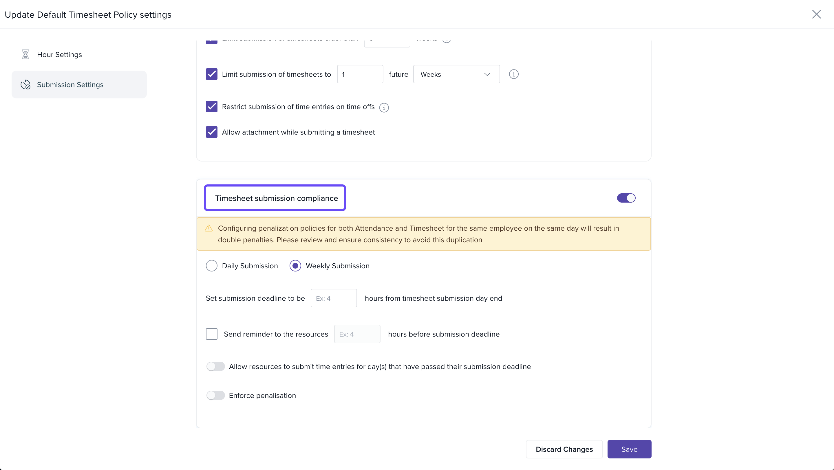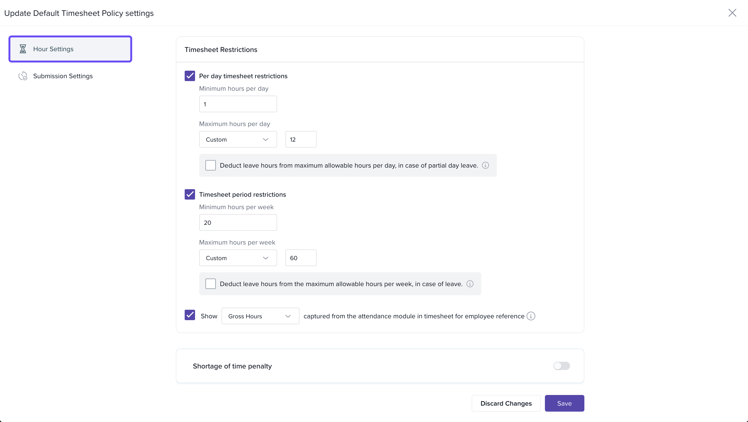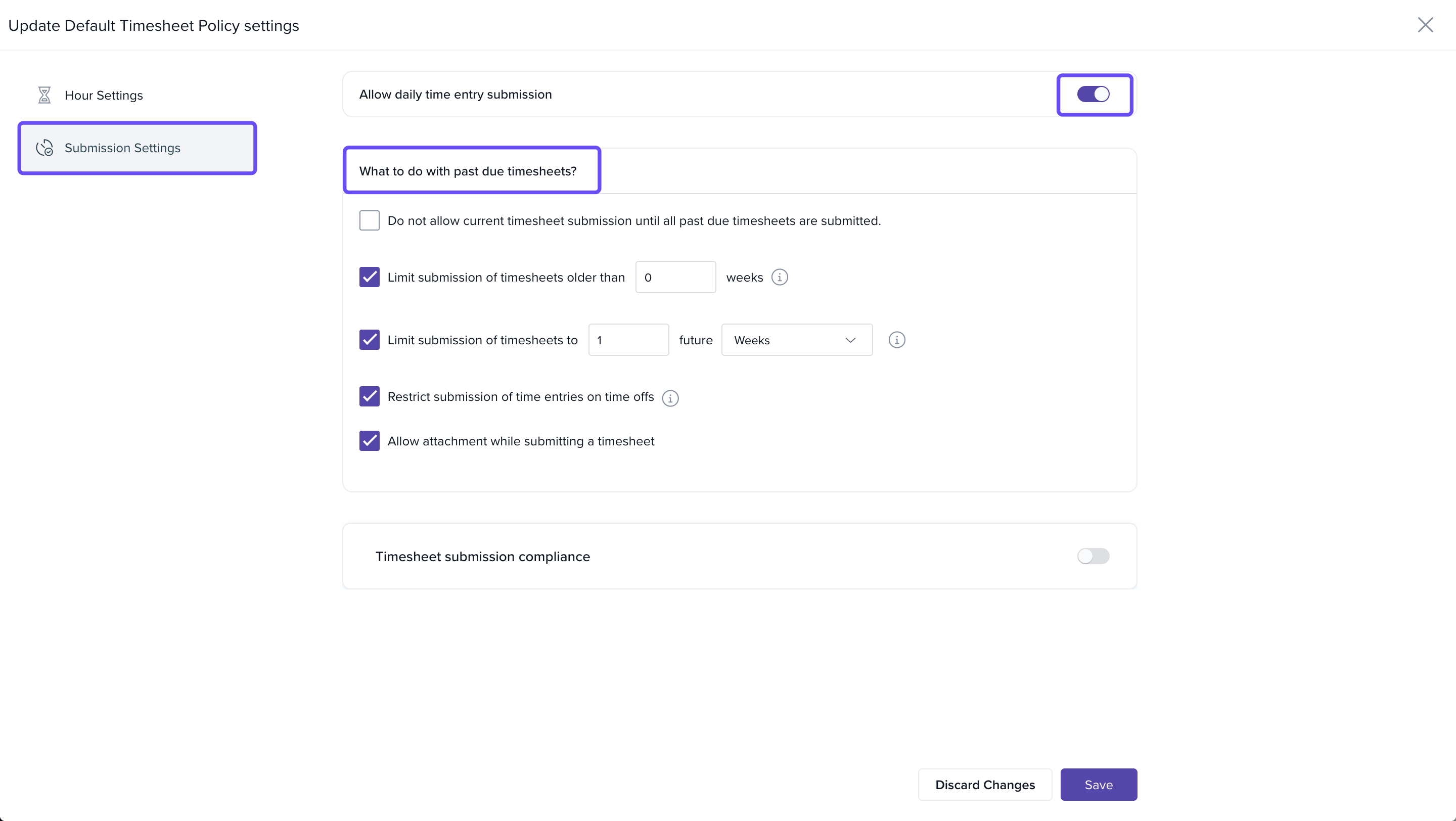 - This enables the feature and unlocks relevant options at the timesheet policy level.