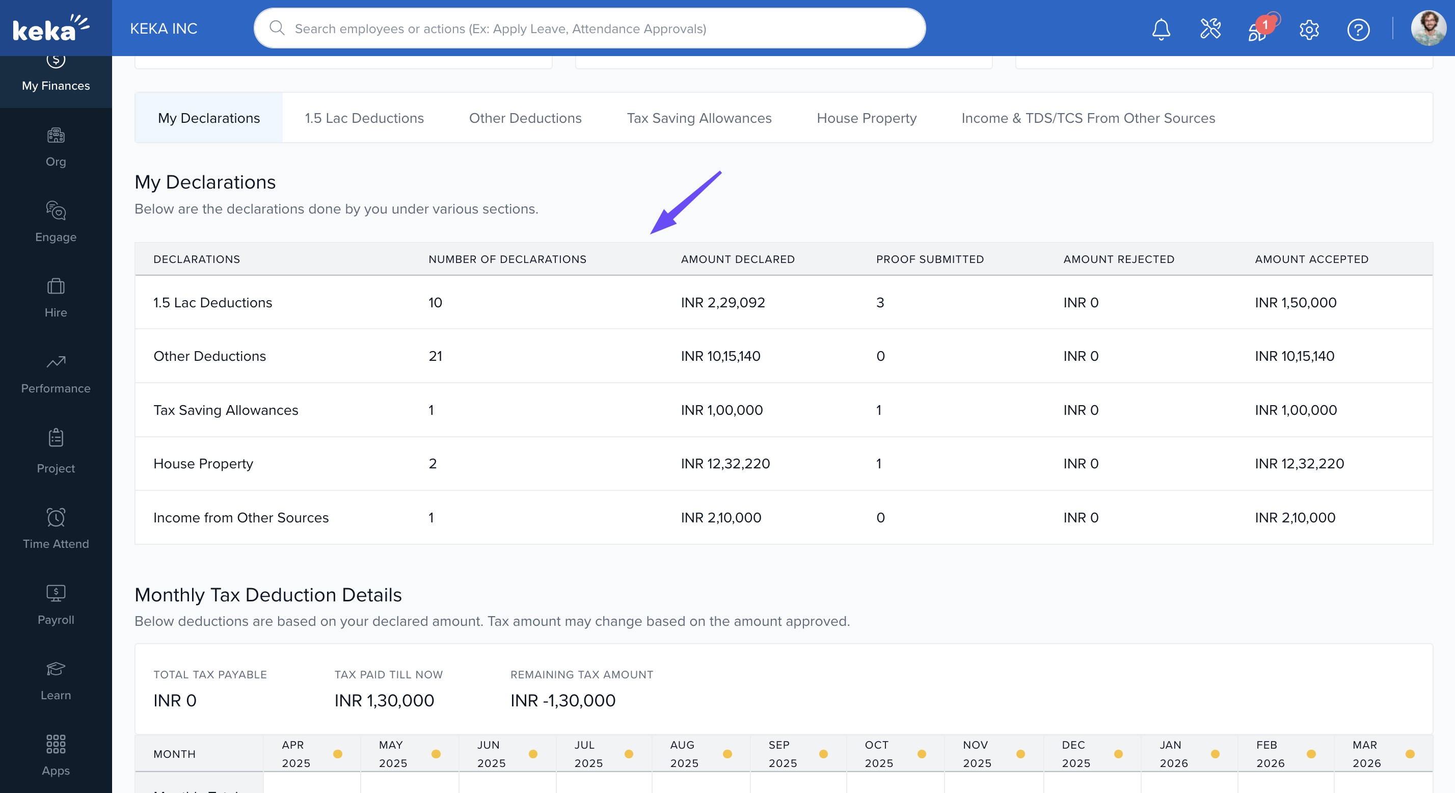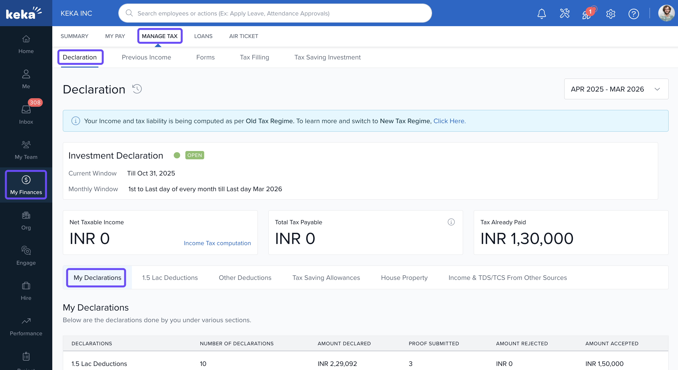 This article explains how to declare your tax-saving investments in Keka. It’s designed for employees who want to reduce their taxable income by submitting eligible investment details for the financial year. Declaring these investments ensures your employer can apply the right deductions when calculating your monthly tax deduction.