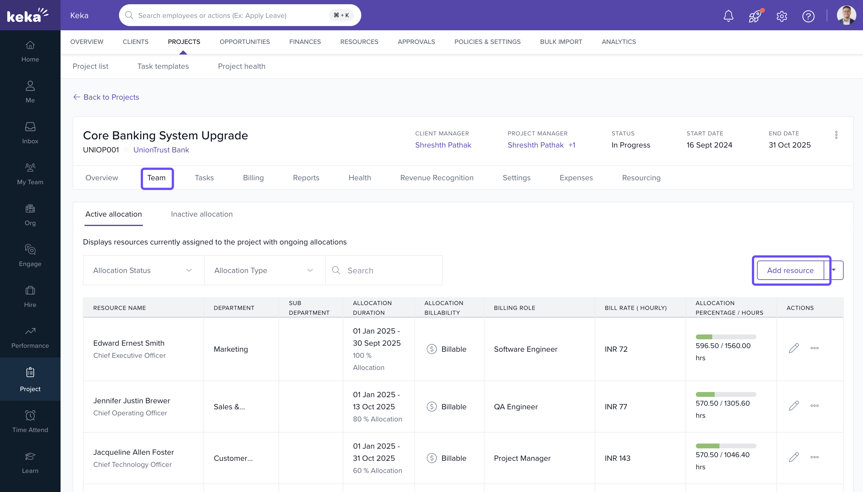 - Other roles with access to Team Allocation in Keka PSA.