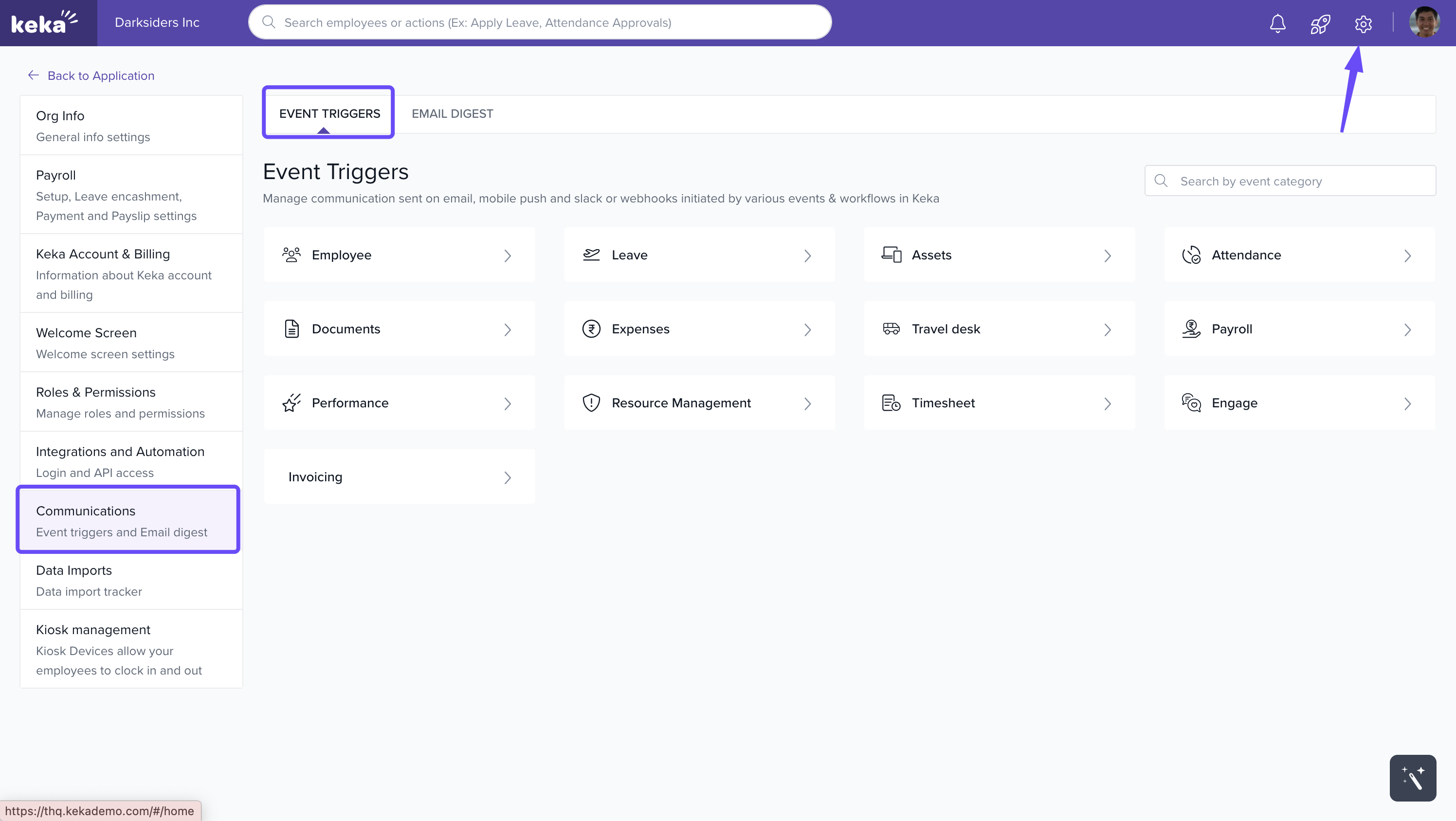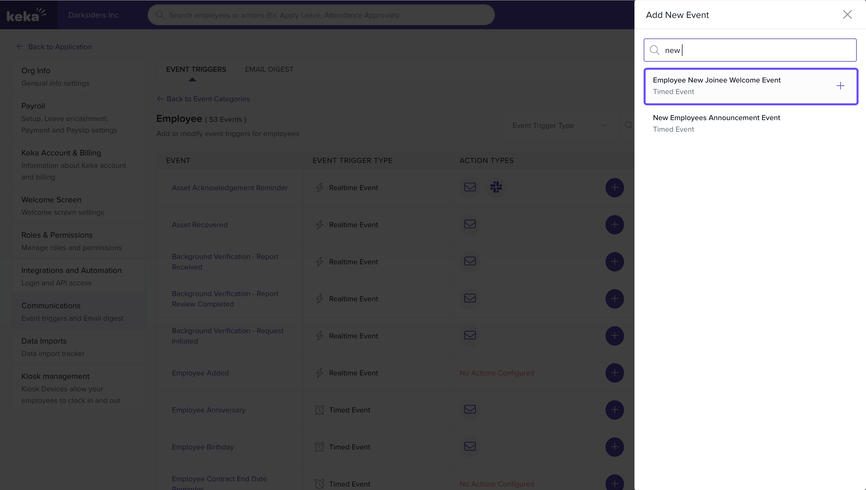 Keka’s Event Triggers let you automate notifications and integrate with external tools whenever specific events occur (for example, a new hire’s joining day, document expiry, or employee lifecycle updates). You can configure: