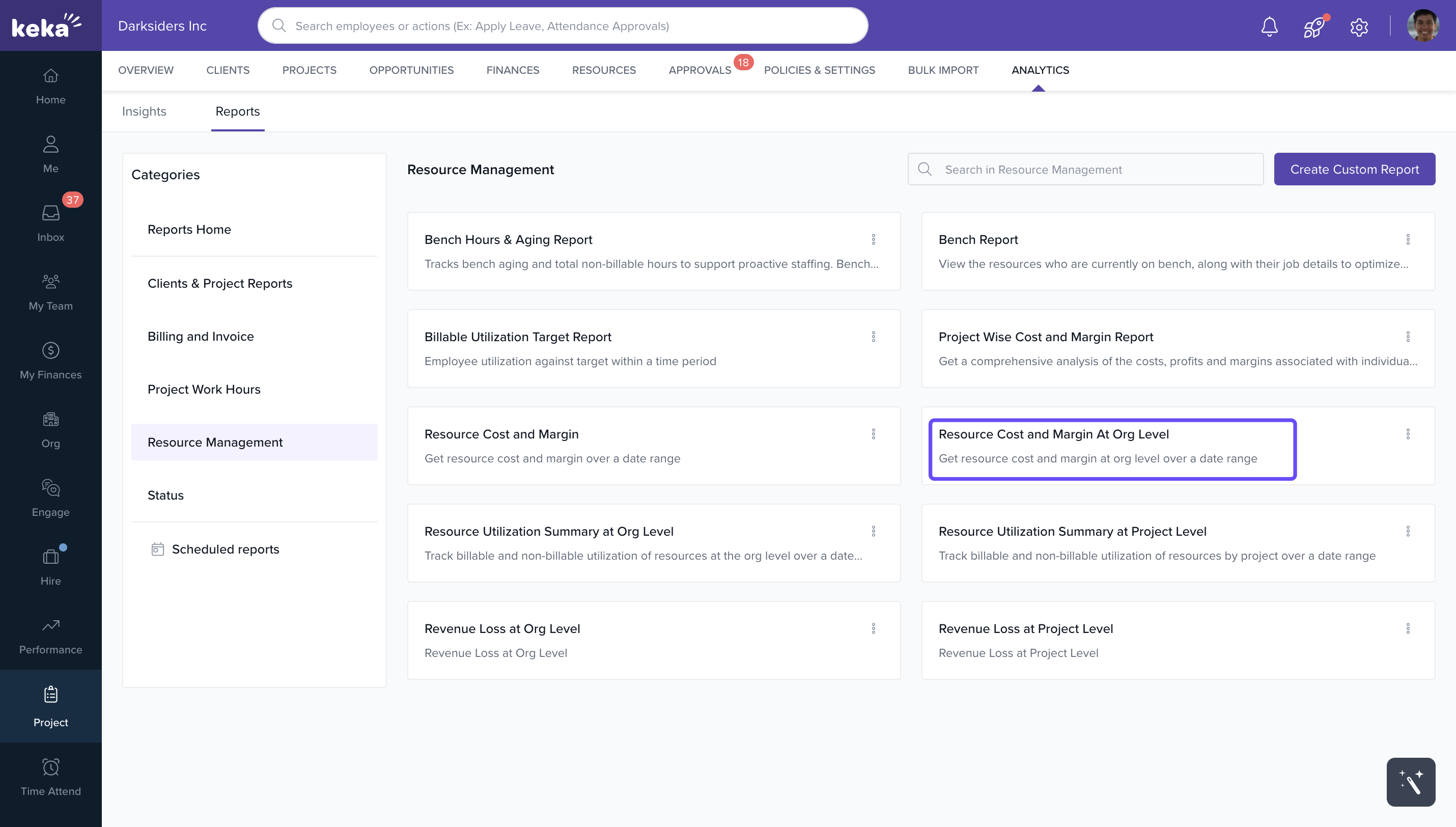- In the same Reports section, select Resource Cost and Margin at Org Level.