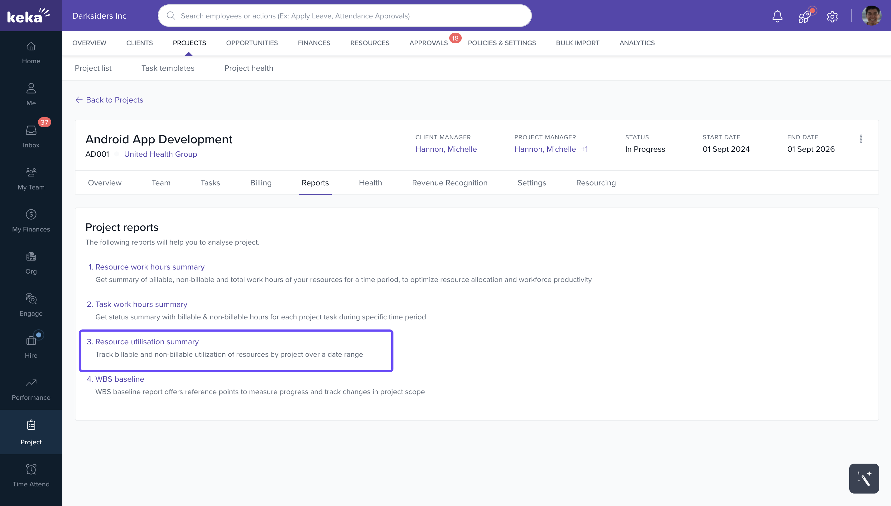 - Click on Reports to view the Resource Utilization Summary at the project level.