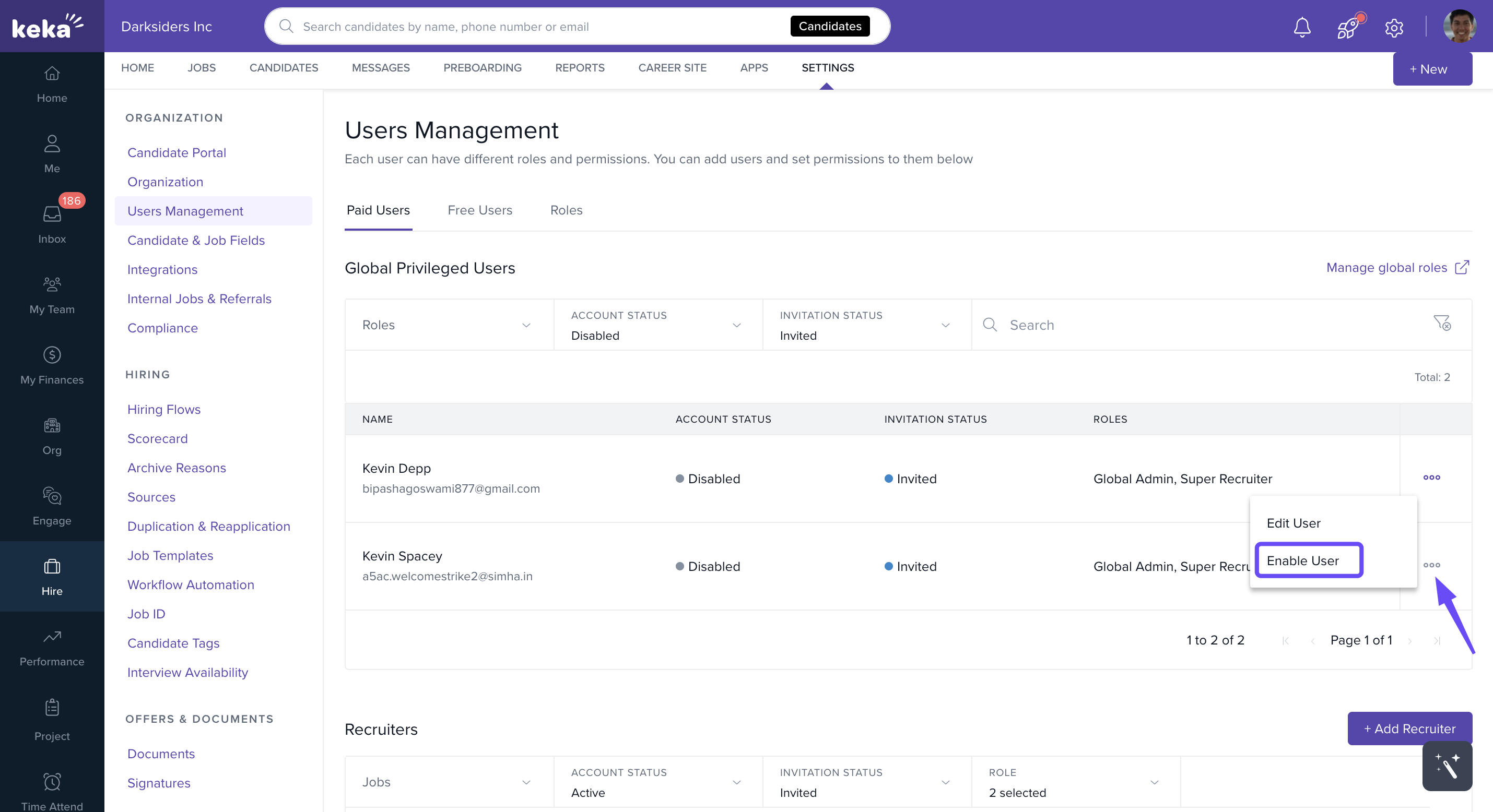 Disable a user in Keka Hire