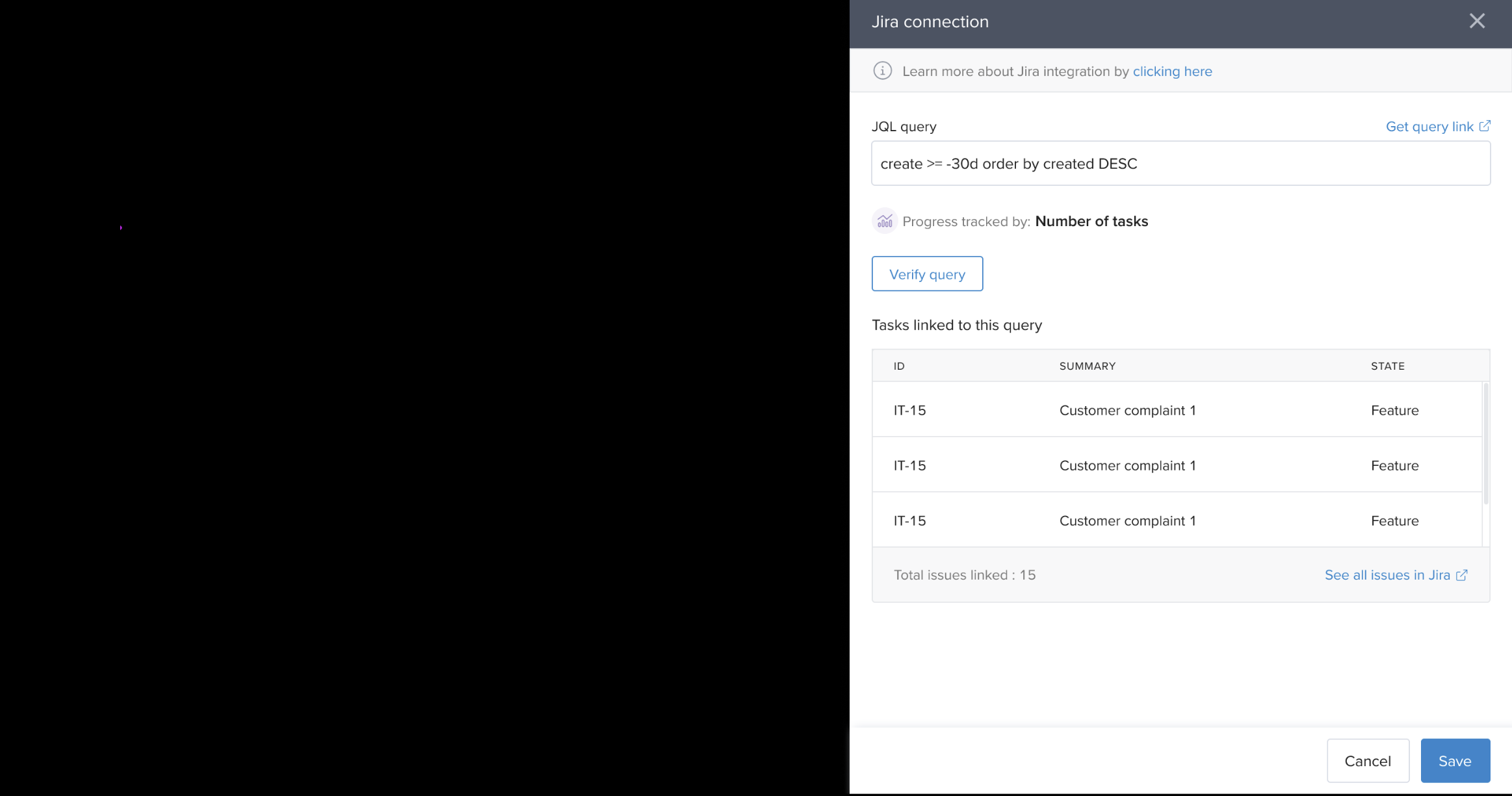 Enter the JQL query that defines the task scope.
