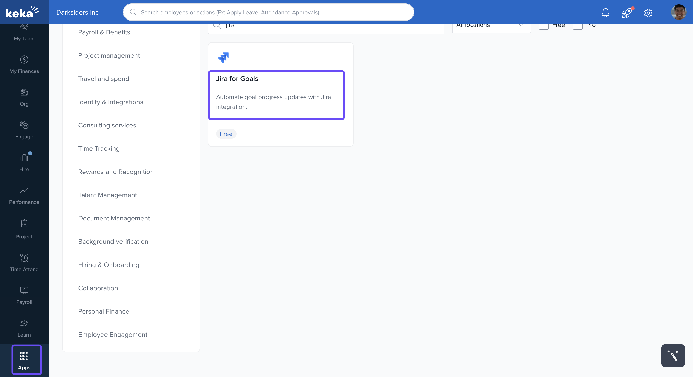 Go to the Apps section in your Keka dashboard.