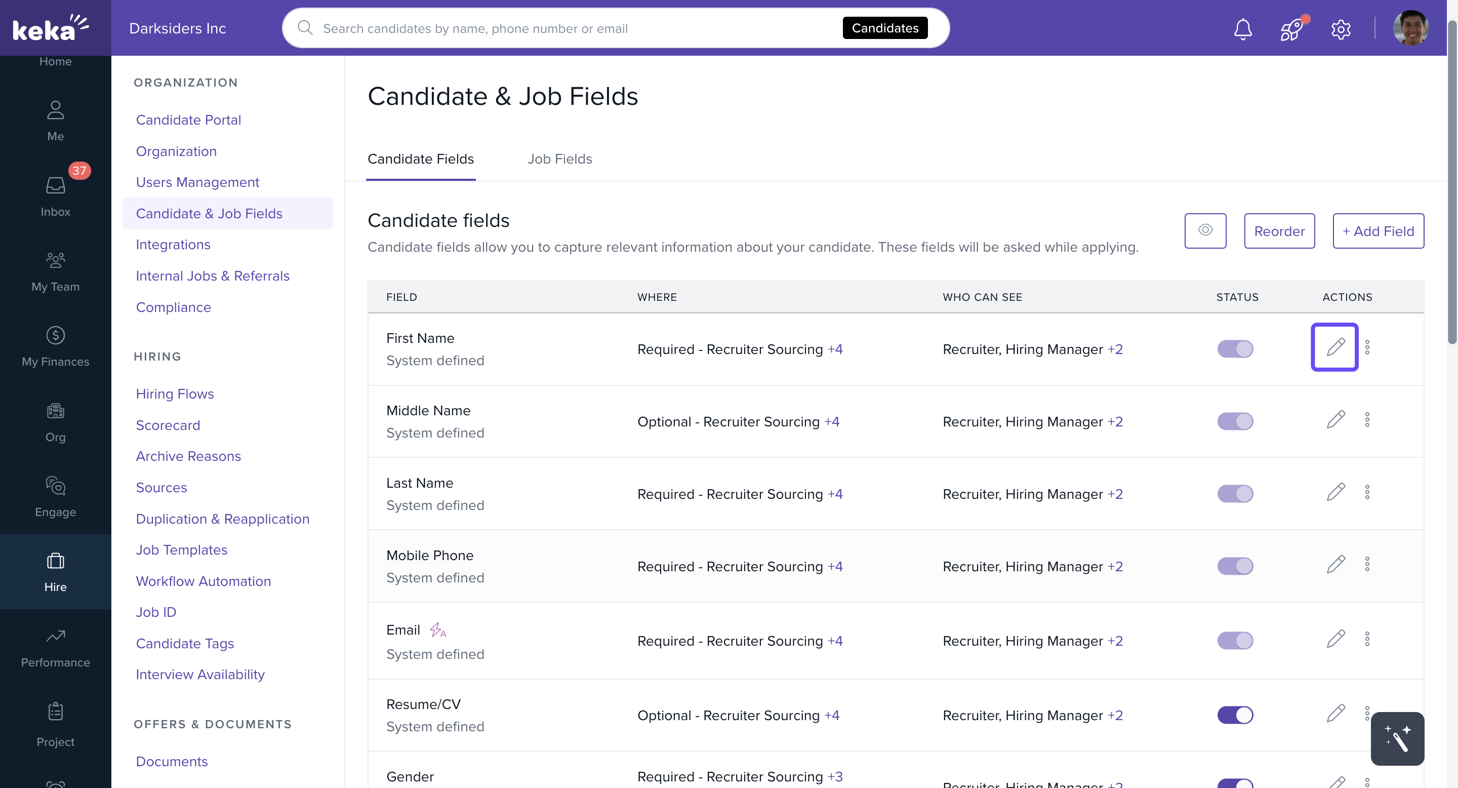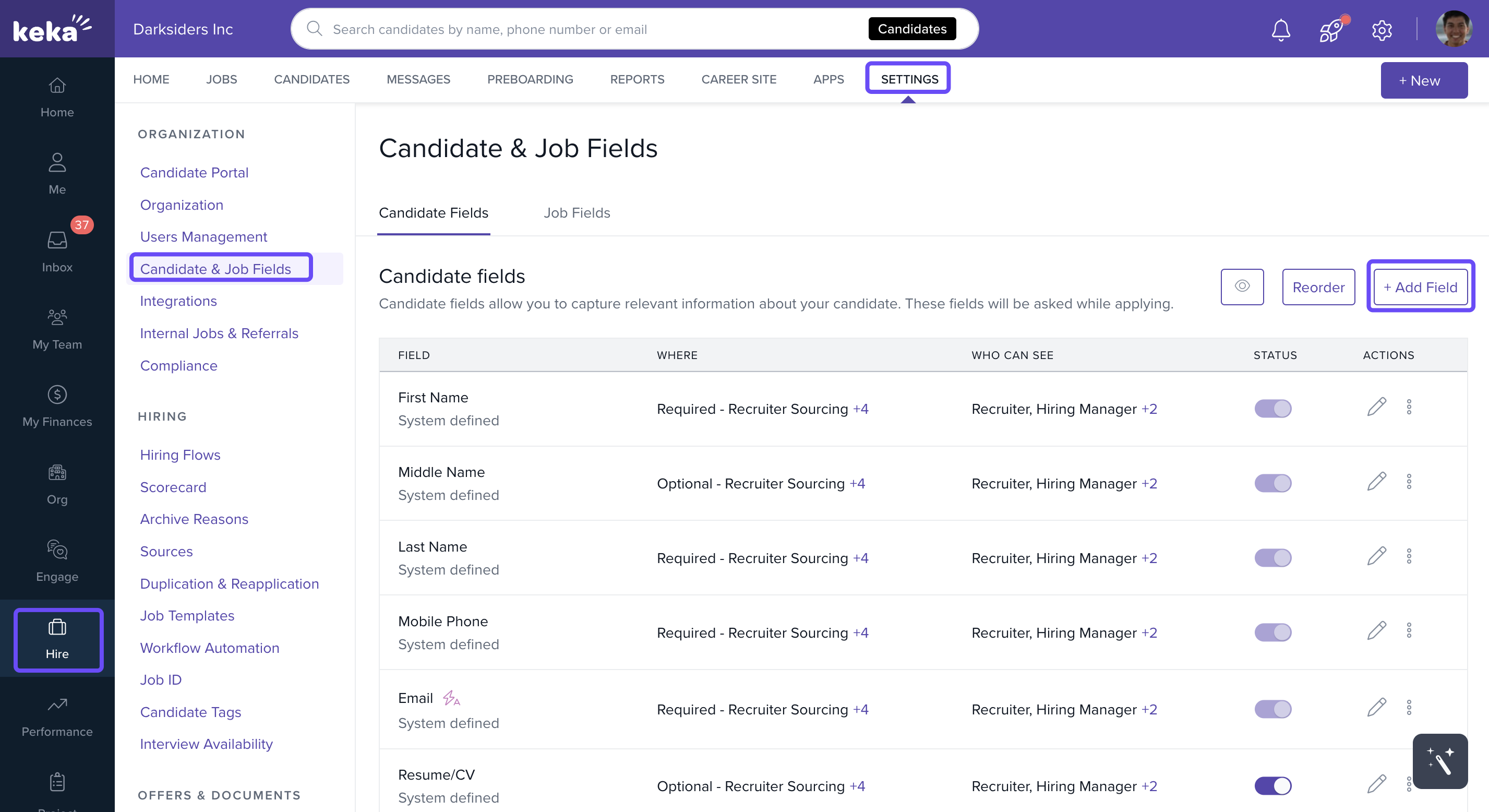 You’ll land on the Candidate Fields tab by default.