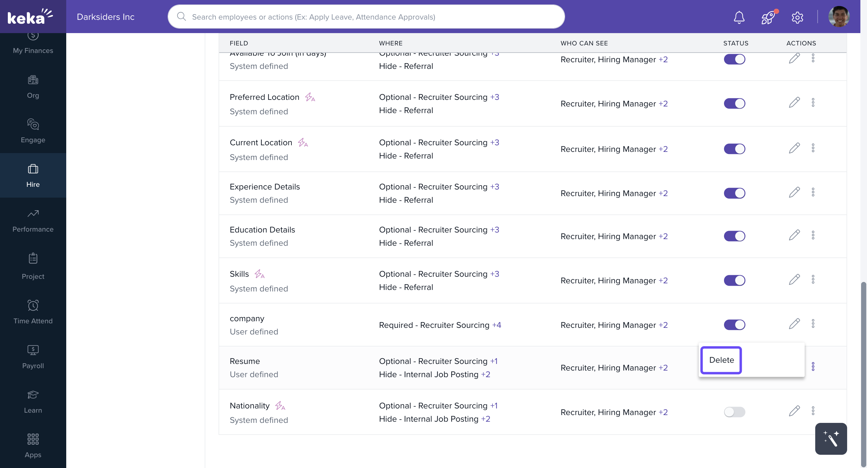 By default, Keka Hire provides a number of system-defined fields. However, you can also add new fields or edit existing ones to suit your organization’s needs.