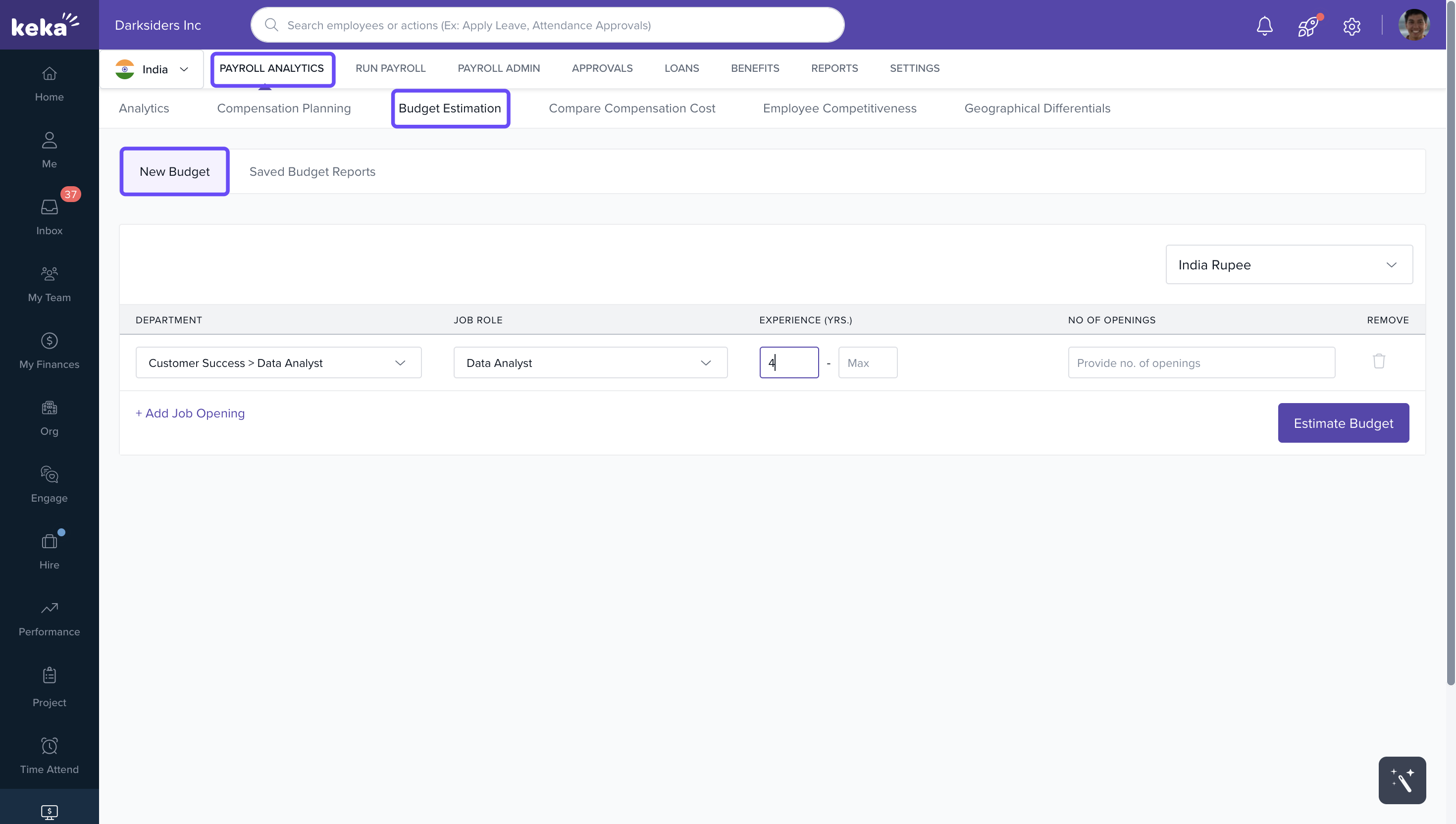 2. Under Payroll Analytics, click Budget Estimation.