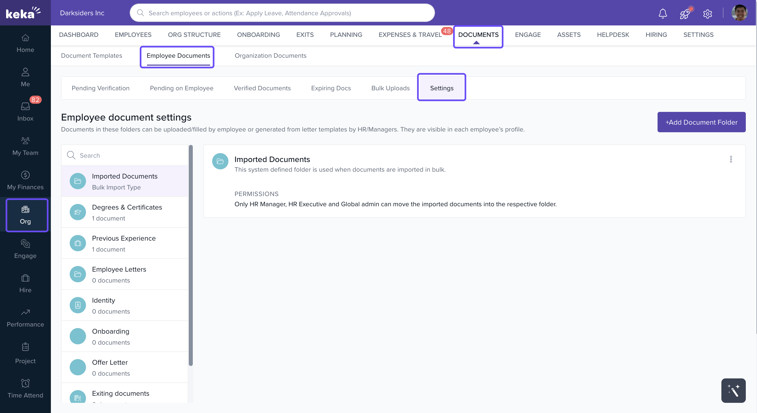 By updating document fields and folder settings, you can ensure that employee records in Keka are well-structured, secure, and accessible only to the right people. This improves compliance, saves HR time, and keeps document management organized.