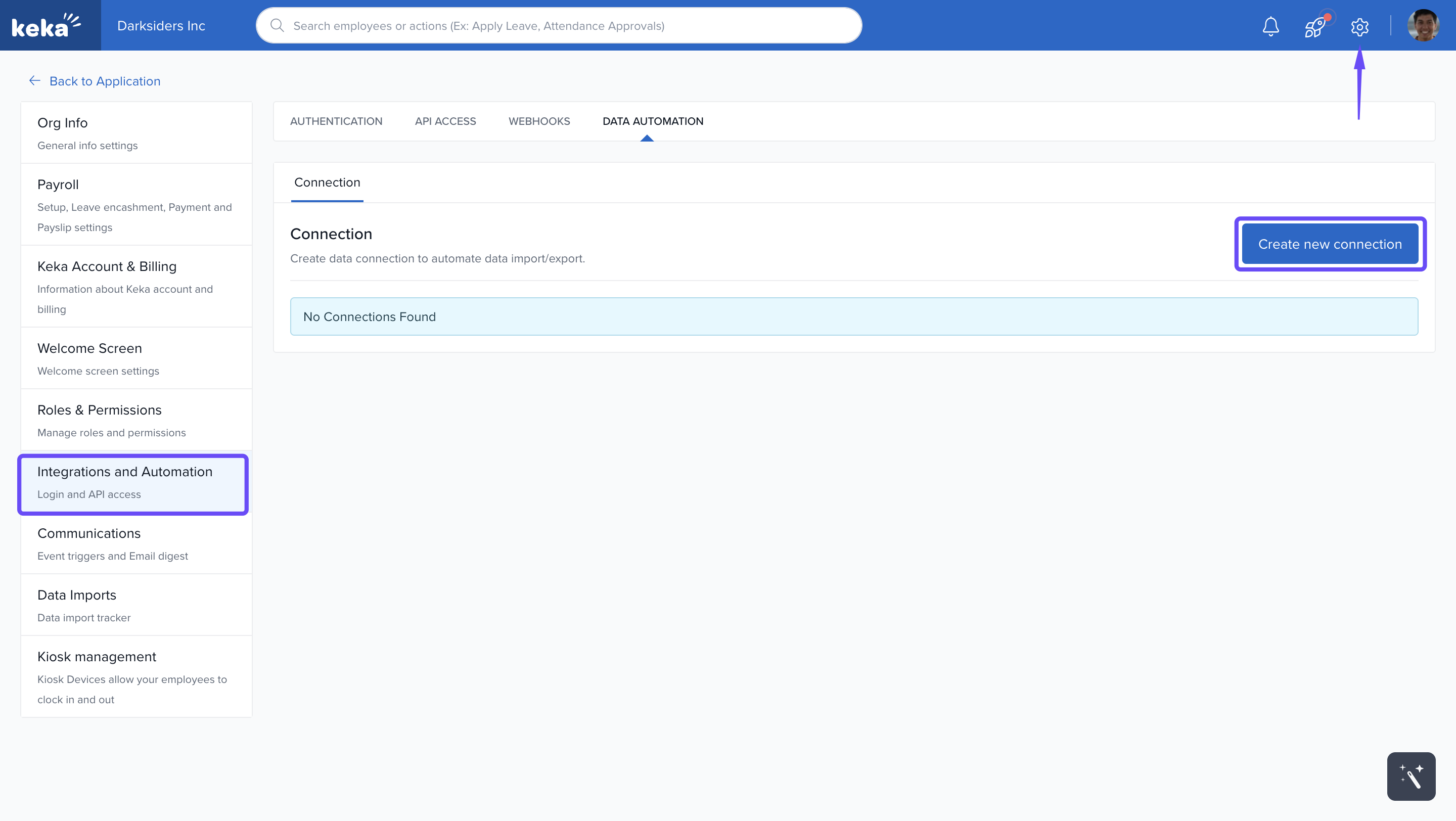 - Navigate to Global Settings > Integrations and Automation > Data Automation and click on Create New Connection to set up your SFTP connection.