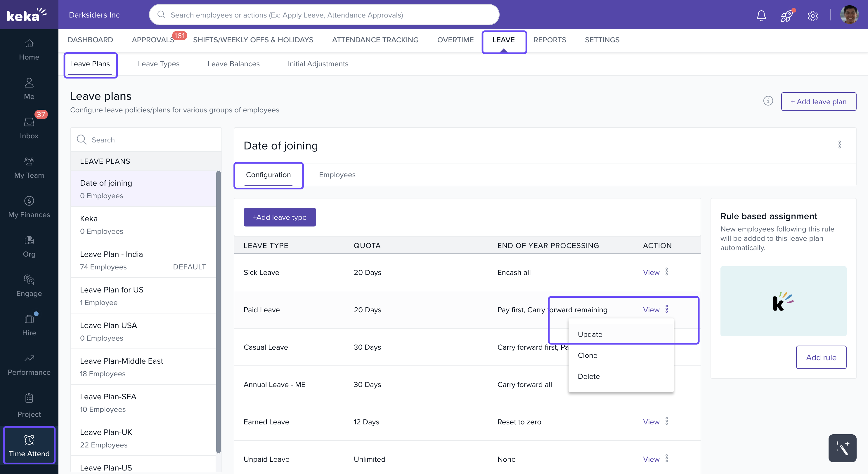You can now configure leave expiry in Keka to align with your organization’s leave cycle. Instead of only setting expiry as a fixed number of days from the credit date, you can expire leave balances at the end of a month, quarter, or year. This gives more control and flexibility, especially for companies with dynamic accrual schedules.