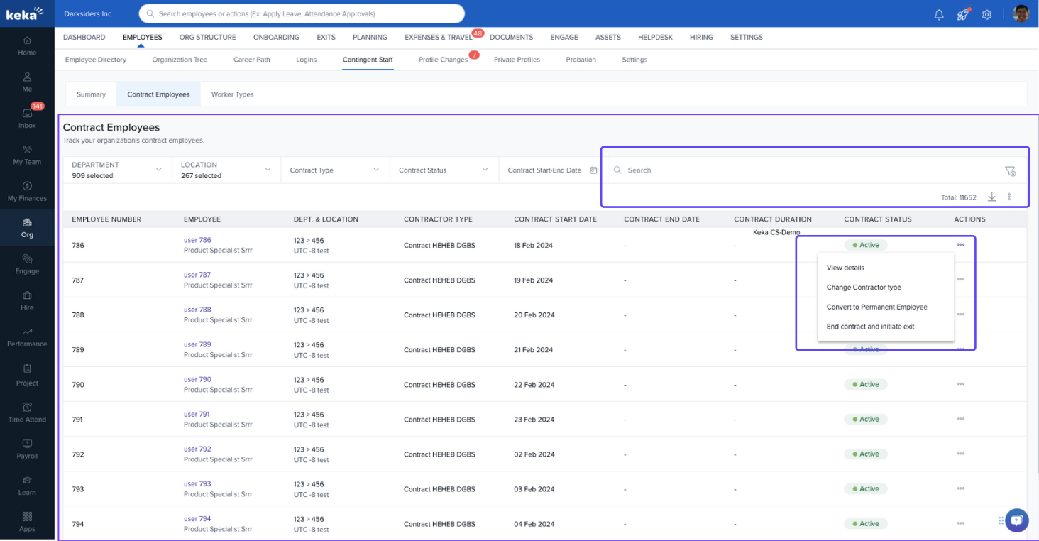 This guide walks you through how to access, track, and take action on contract employees in the Keka portal.