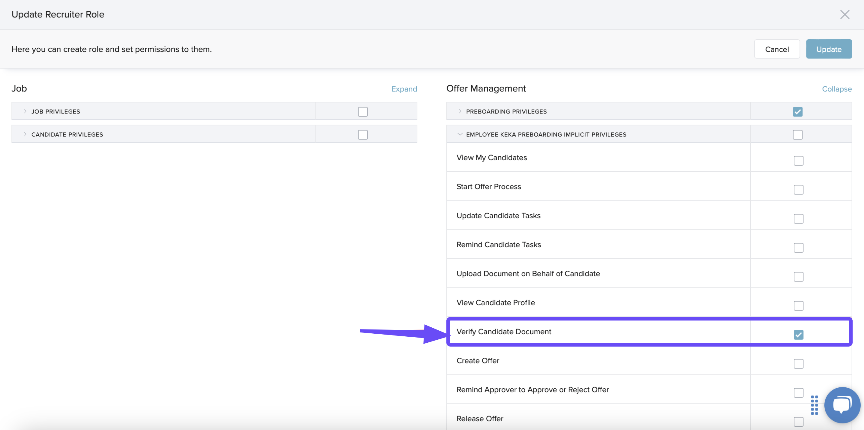 A. In Keka Hire > Users & Permissions, there is a role called "Verify Candidate Documents" under "Employee Keka Preboarding Implicit Privileges". If this option is selected, for the specifc role, the users who are tagged to that role will be able to approve tasks / verify documents, given there is an approver added for the task (not necessarily the recruiter). Very soon, we are also planning to bring 'Recruiter' roles to be added as task approvers