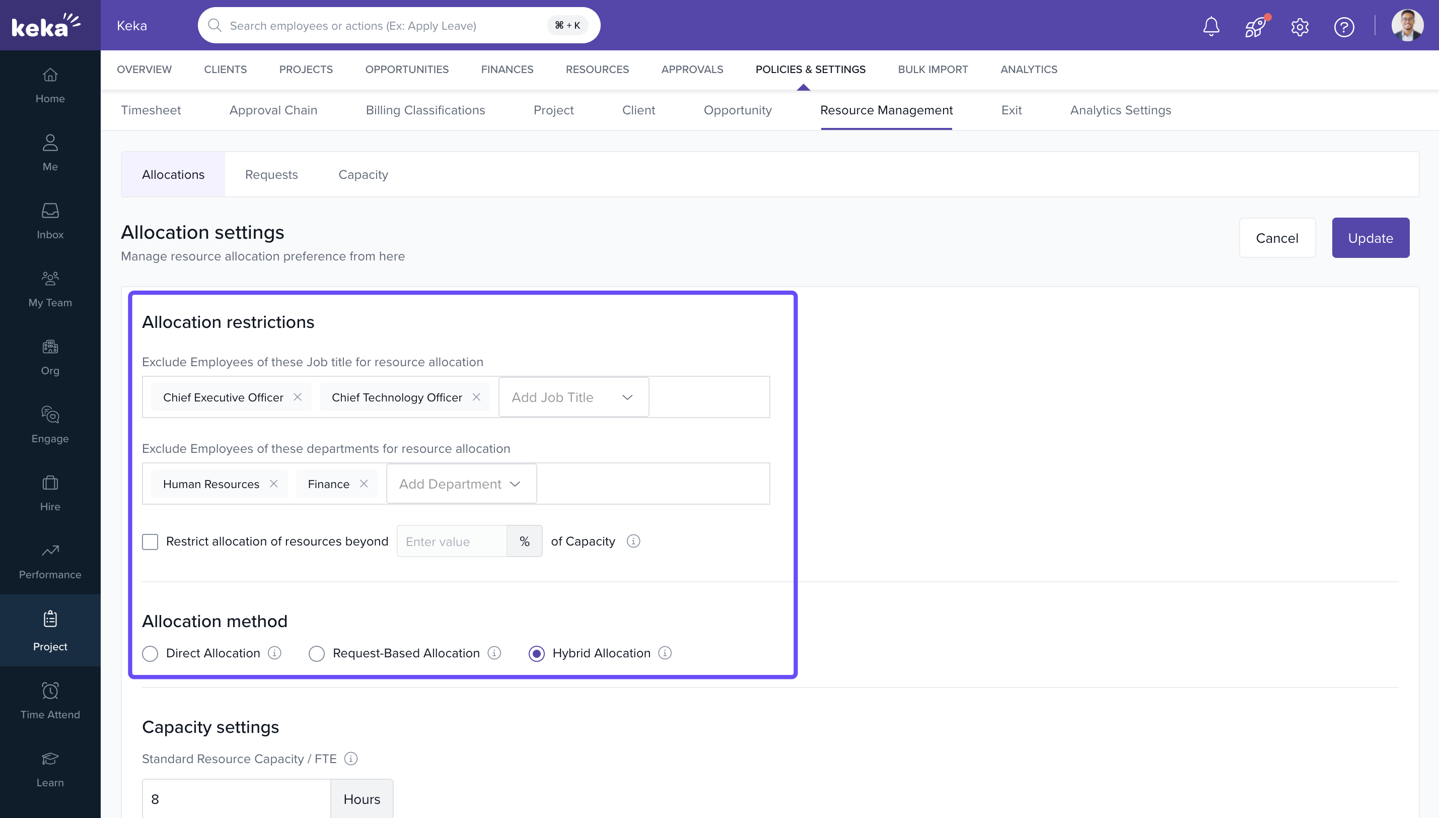 You’ll find a set of options that determine how Keka PSA manages Allocations, Resources, and Availability.