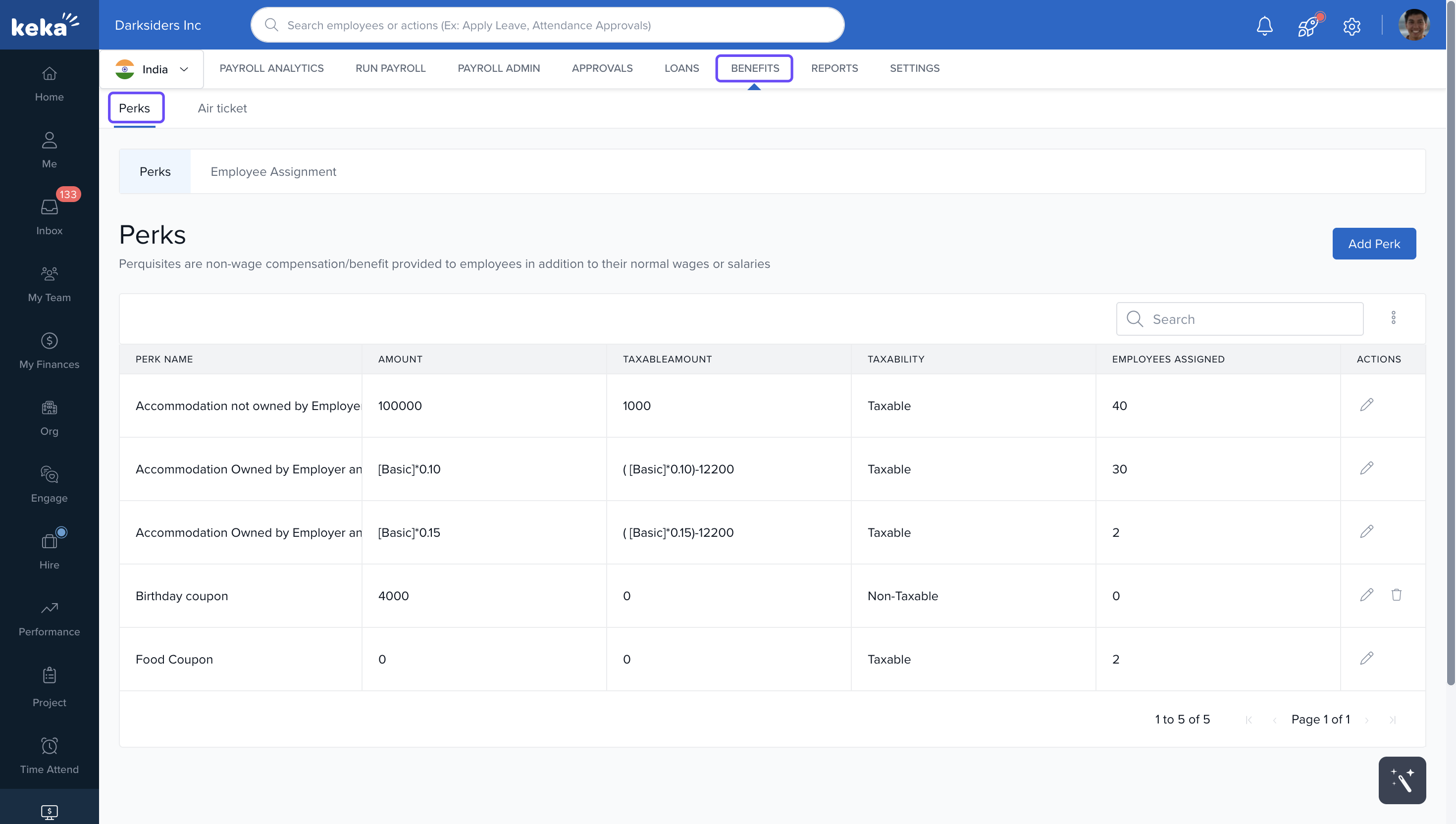 Go to Payroll → Benefit → Perks.