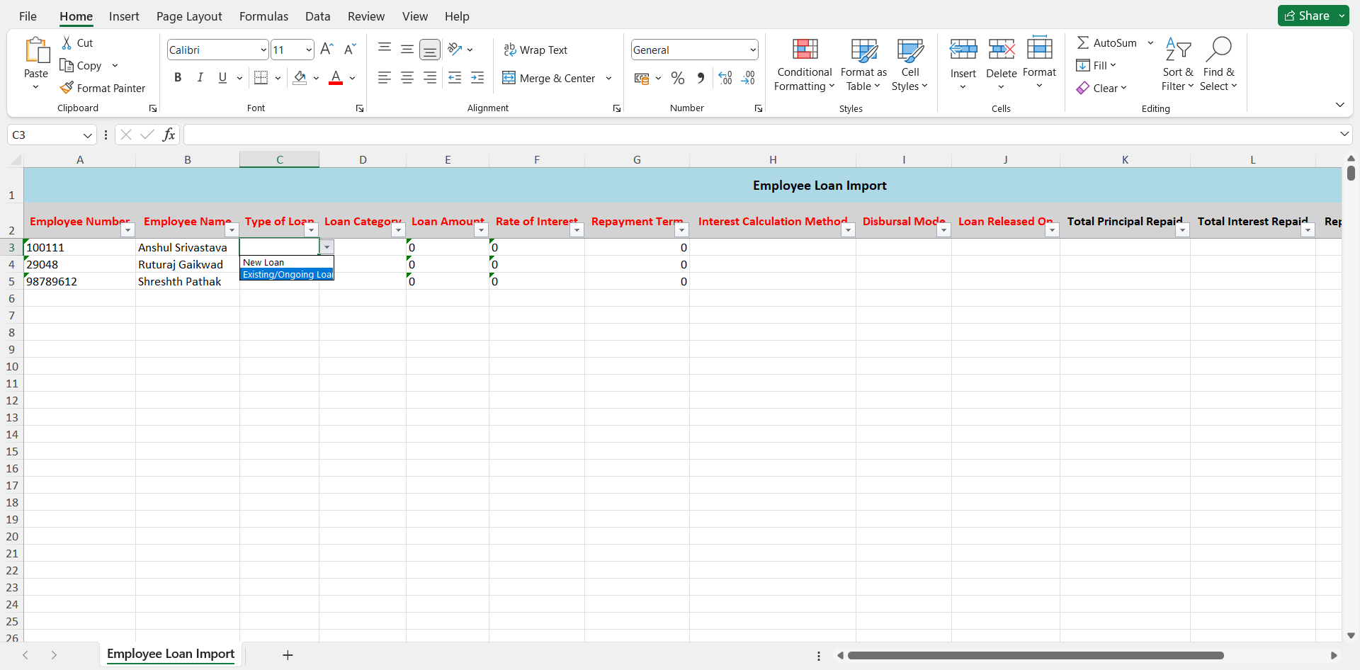 4. Import the file to add all loans in bulk to Keka.