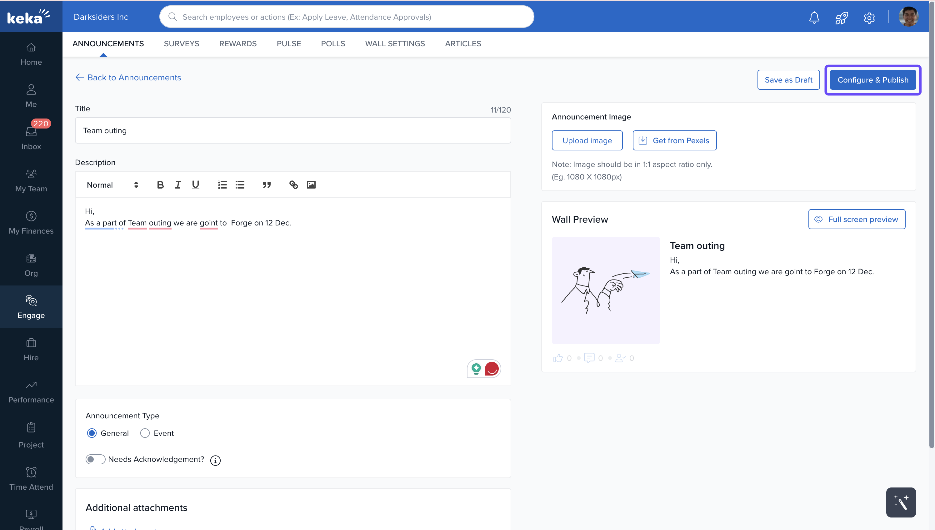 Tip: Use the Wall not just for formal announcements but also to build a sense of team culture through praise and updates.