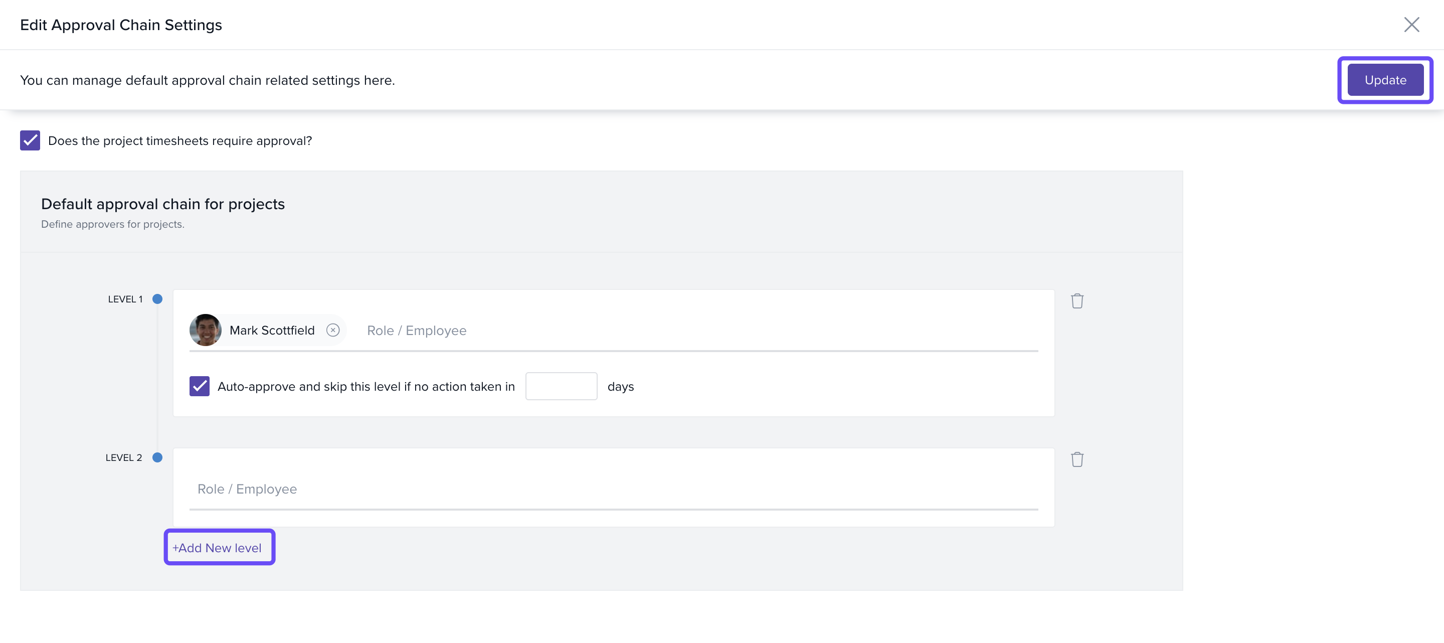 Click +Add New Level to introduce additional approvers
