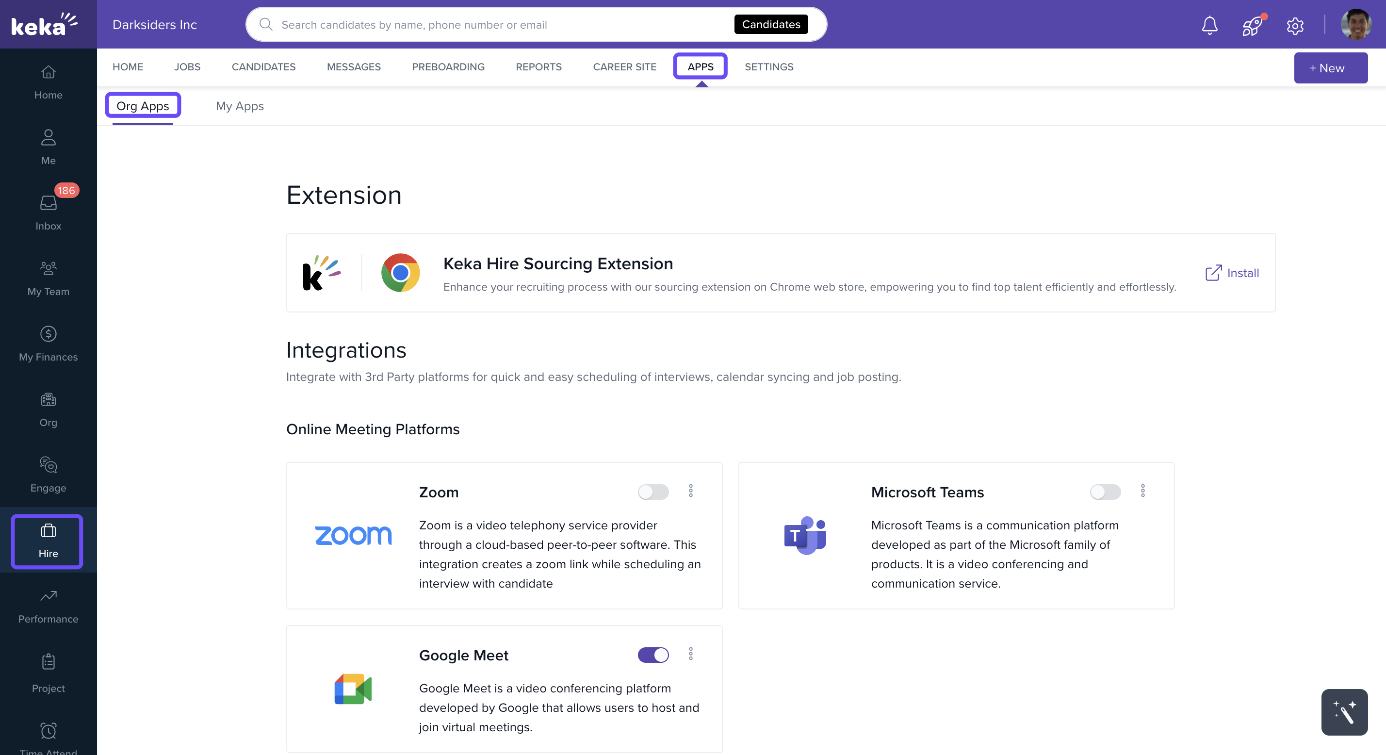 - In the Org Apps section, locate the Job Boards section where you will find Naukri.