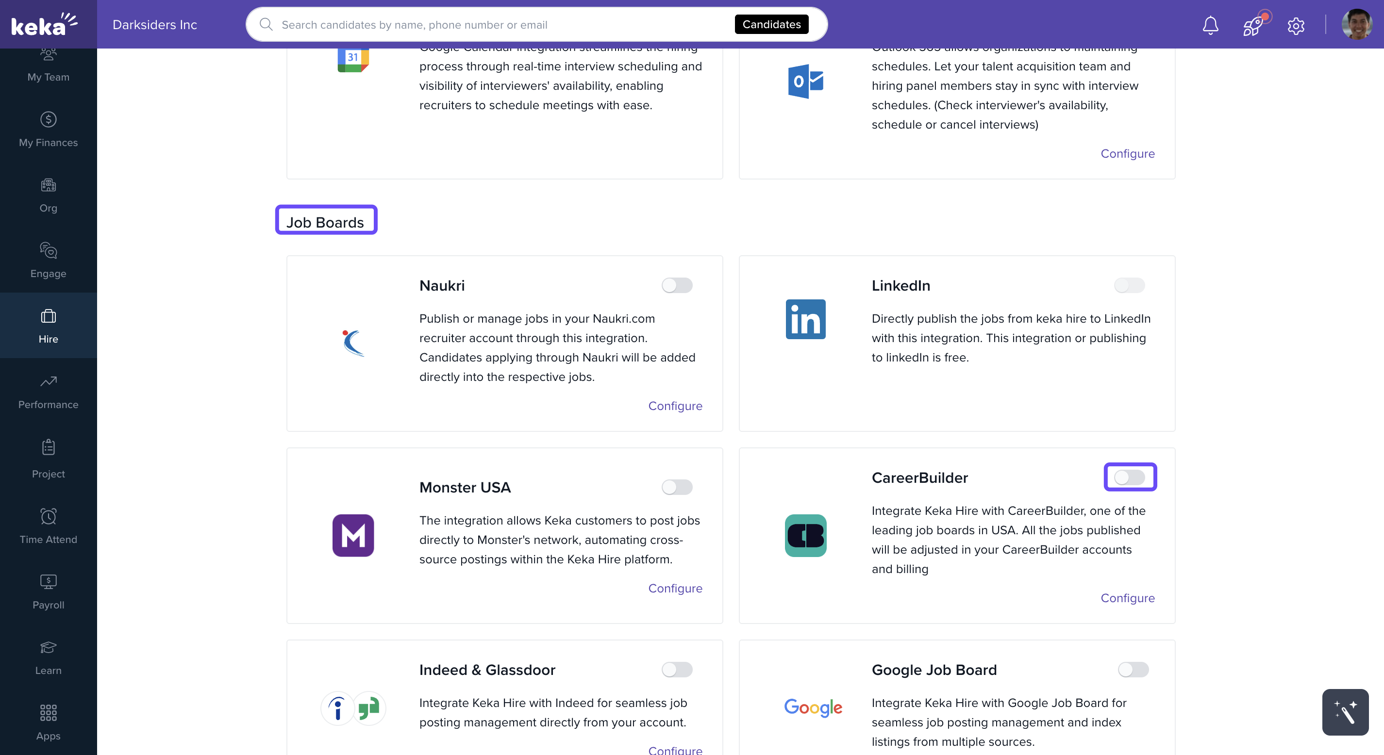 You can publish jobs from Keka Hire directly to CareerBuilder.