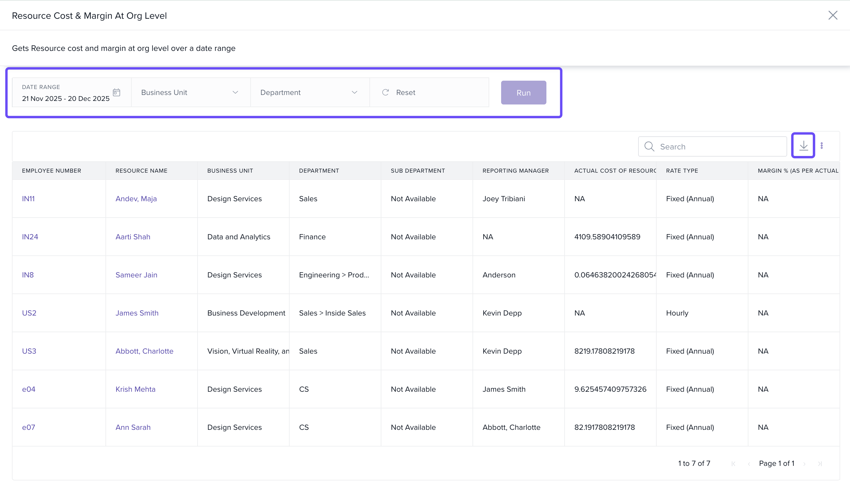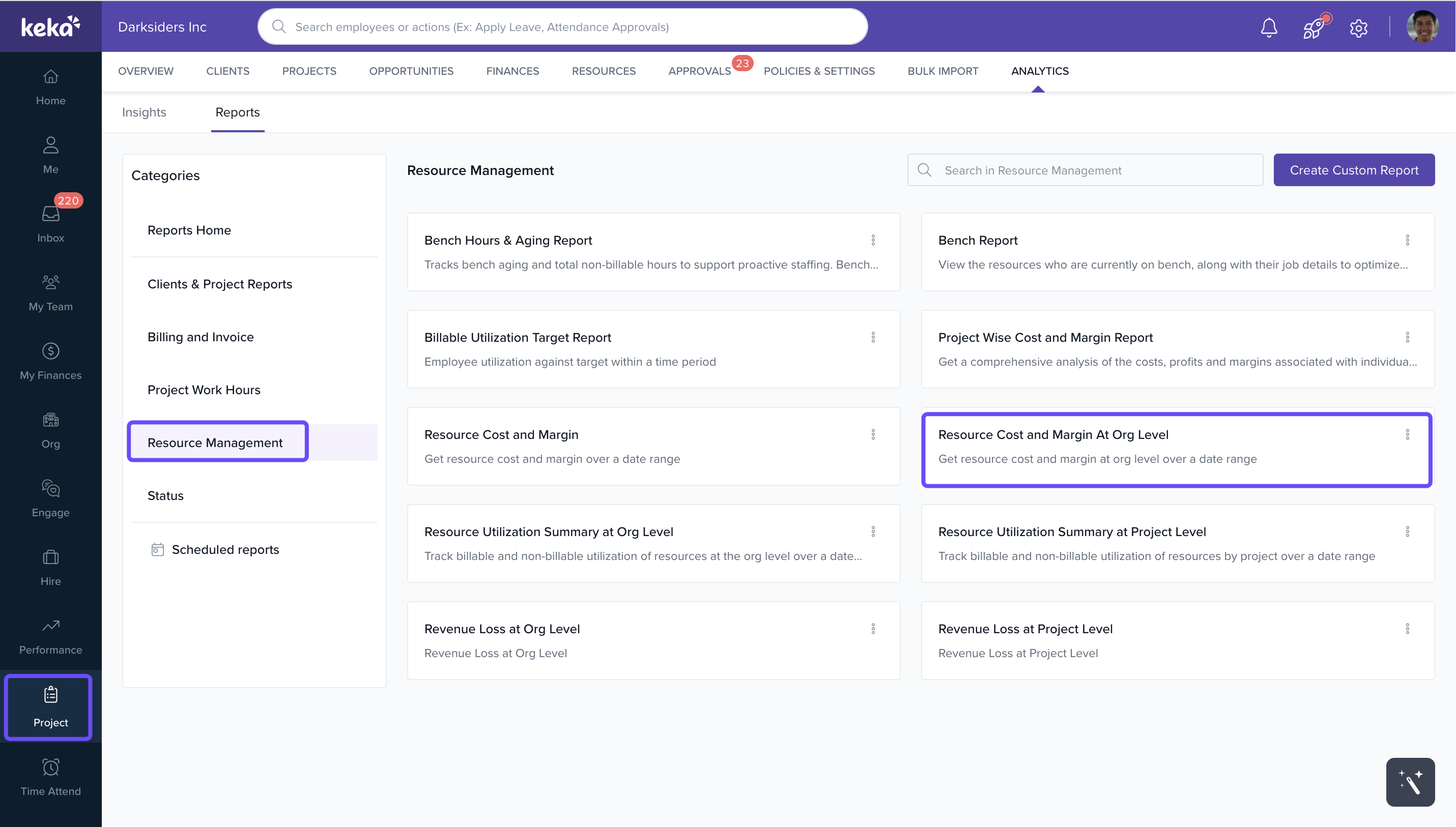 Keka's Resource Cost and Margin at Org Level report offers a comprehensive view of resource costs and profit margins across your organization. It’s designed to support strategic planning, optimize resource allocation, and improve profitability.