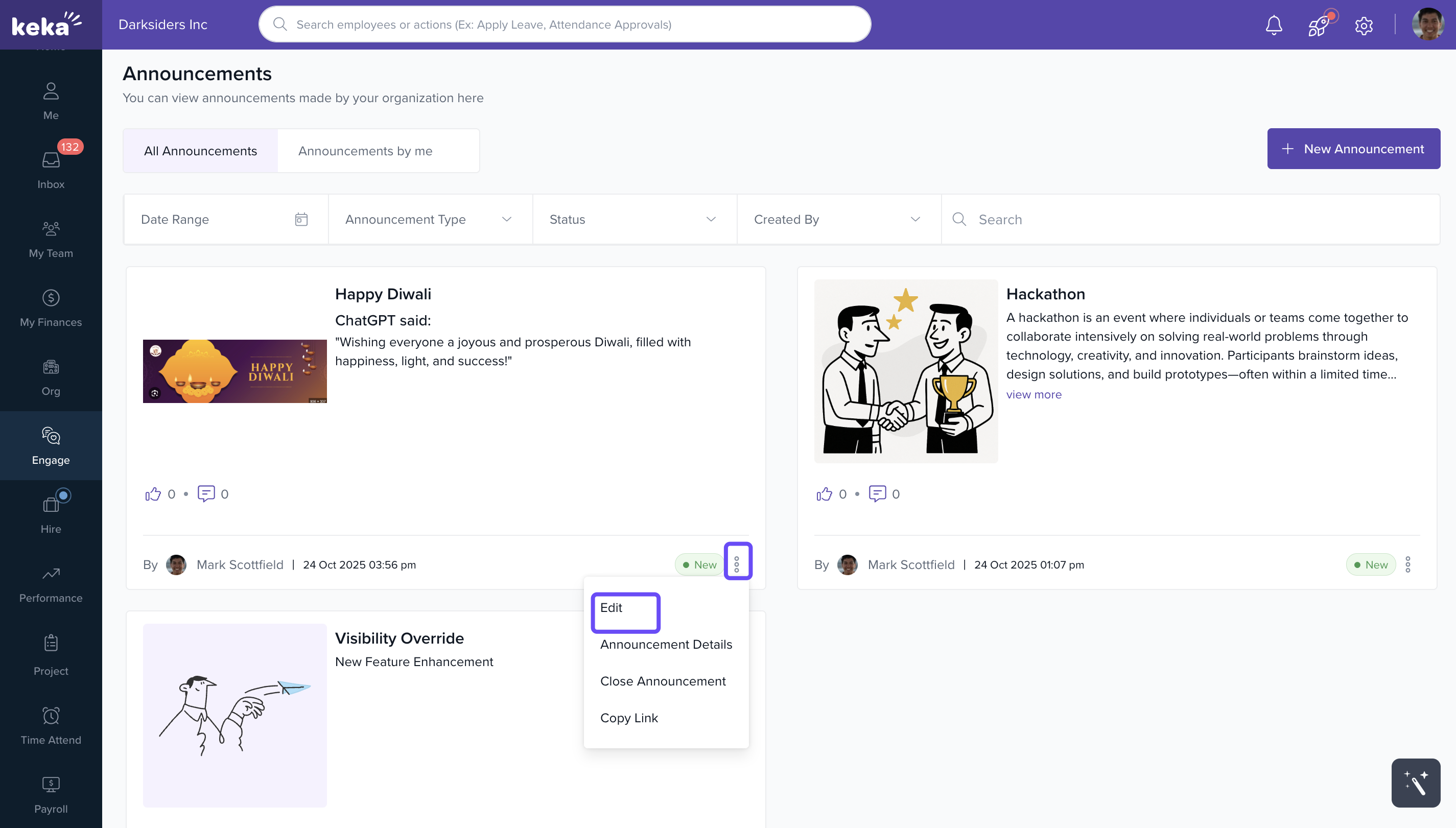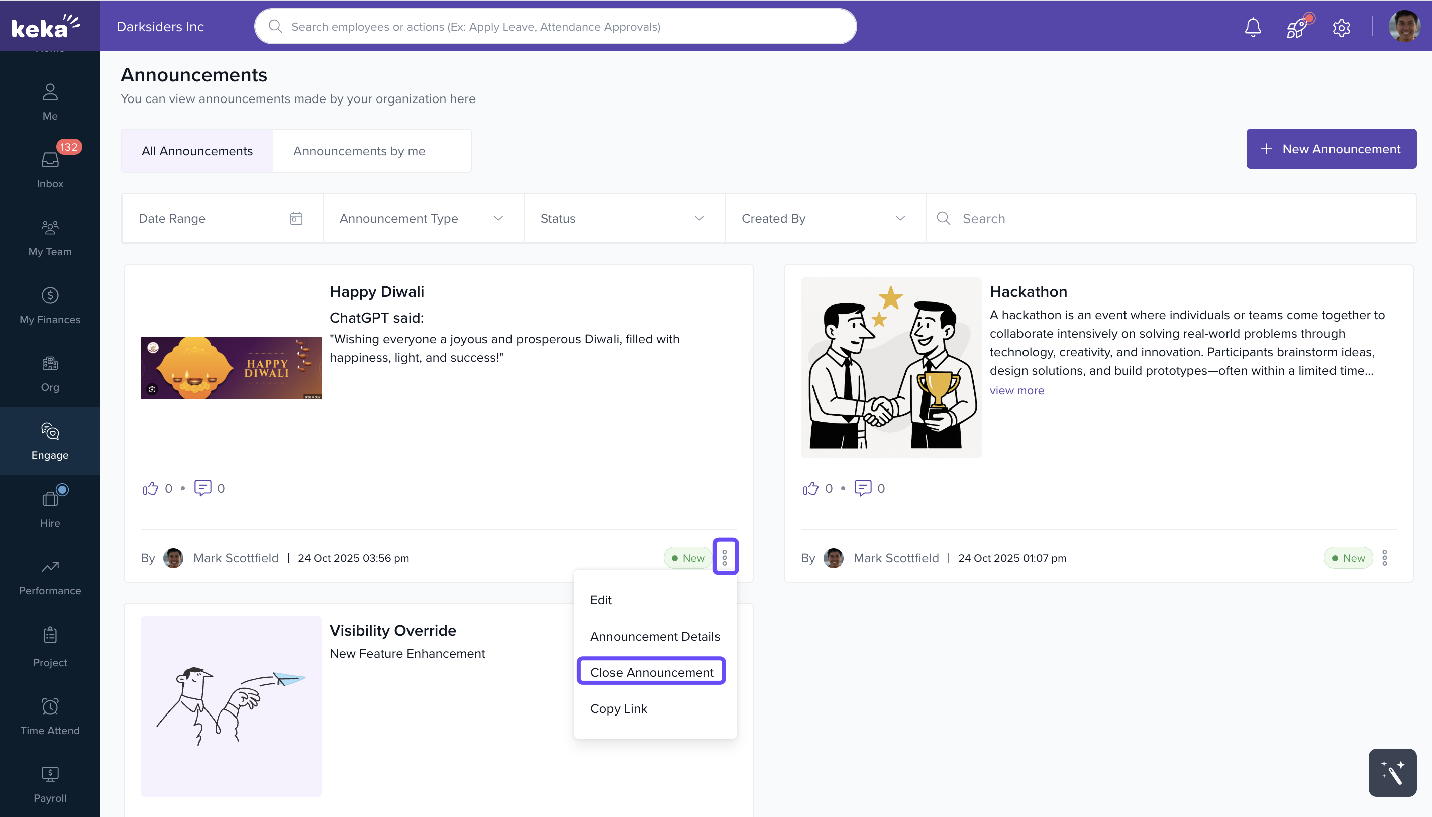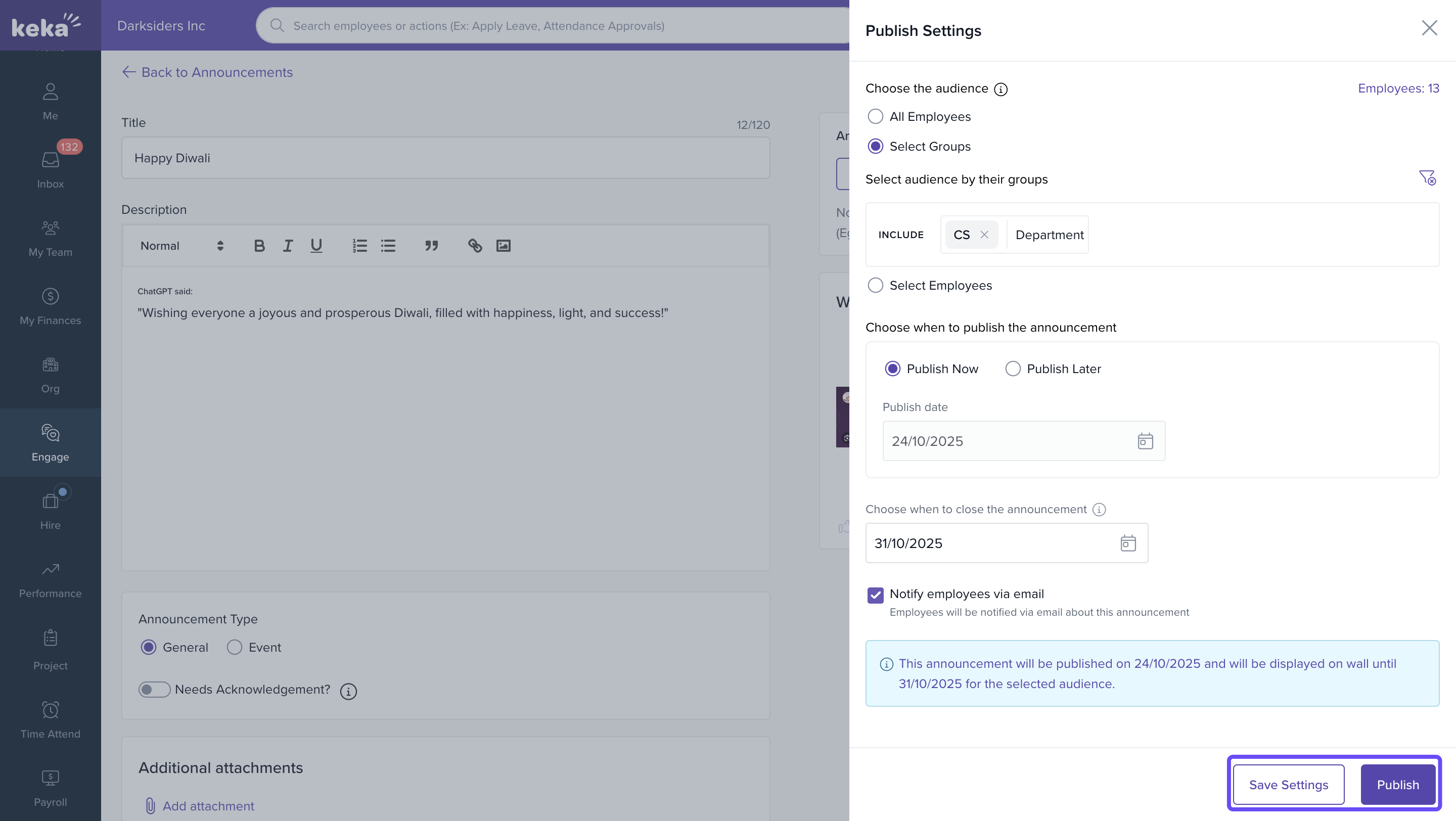 Using Announcements in Keka keeps communication transparent and efficient—helping build a more engaged, informed workplace.