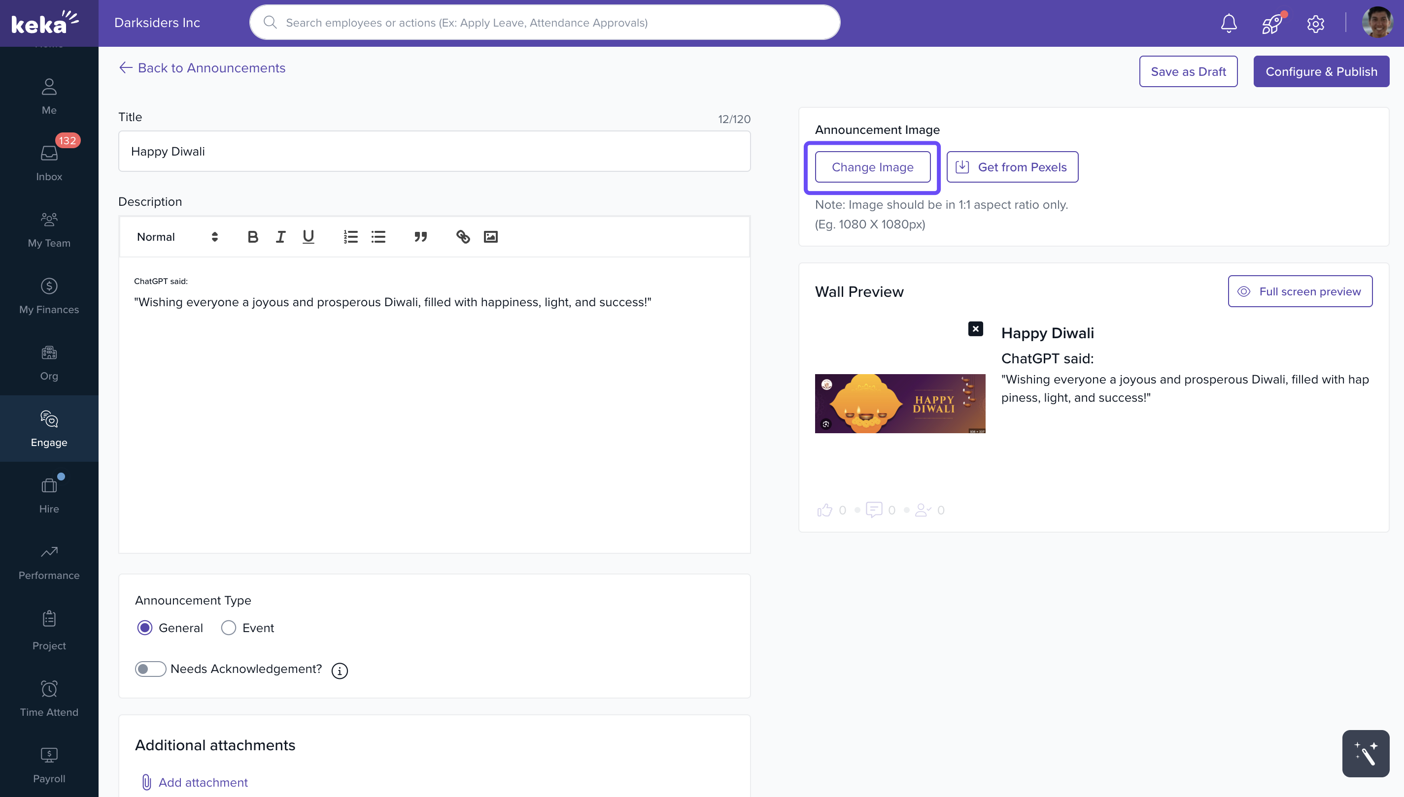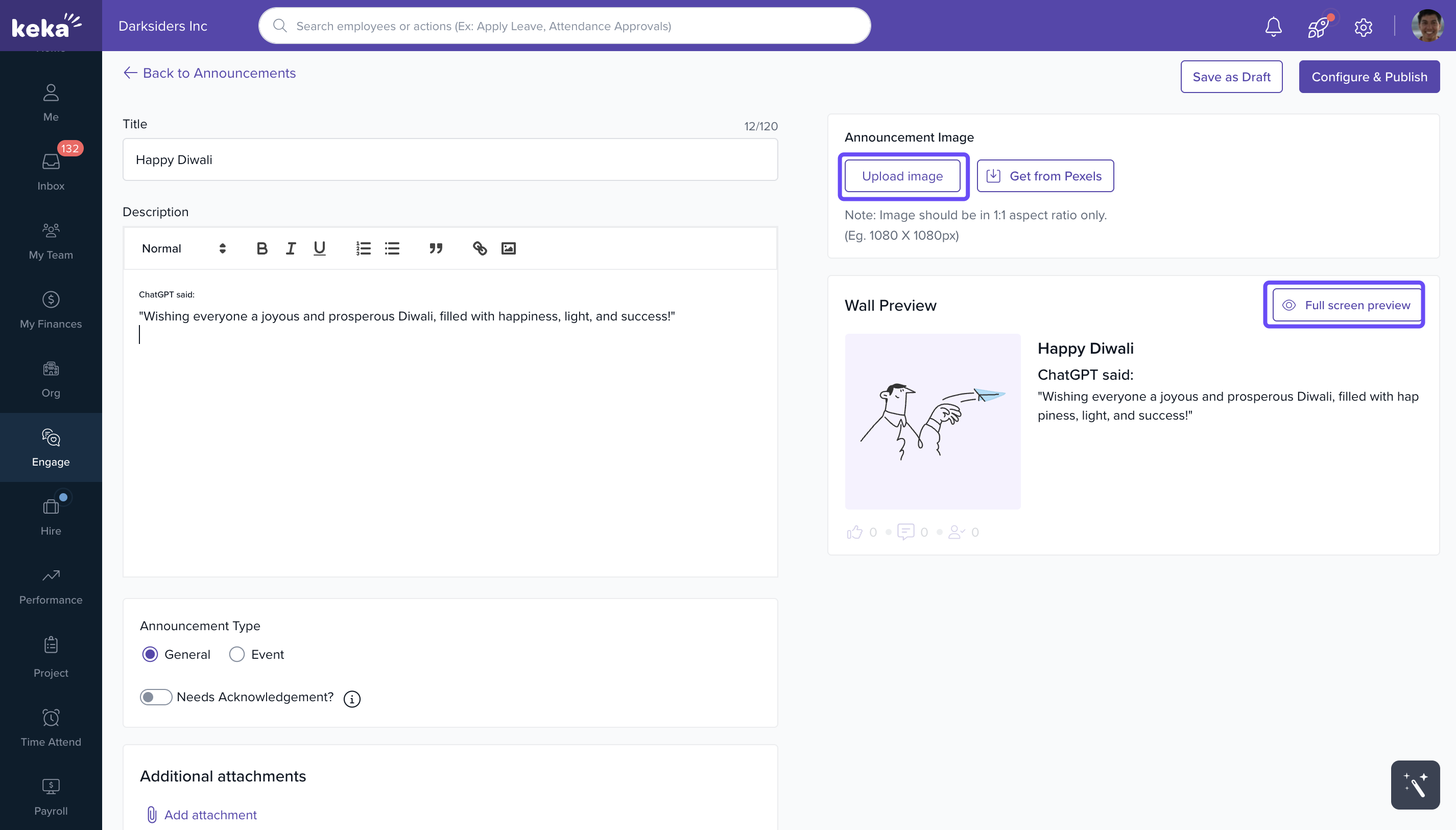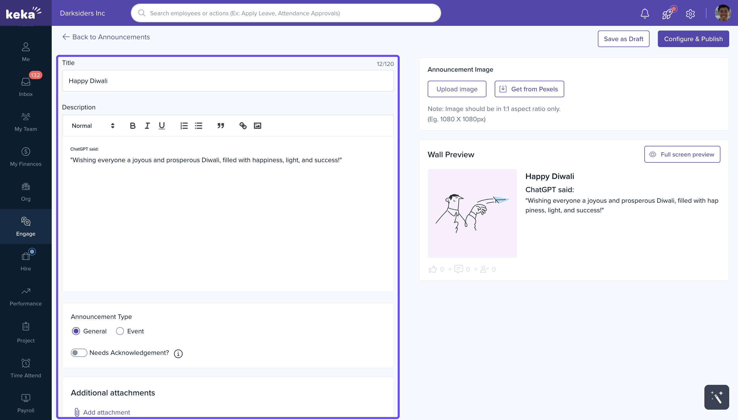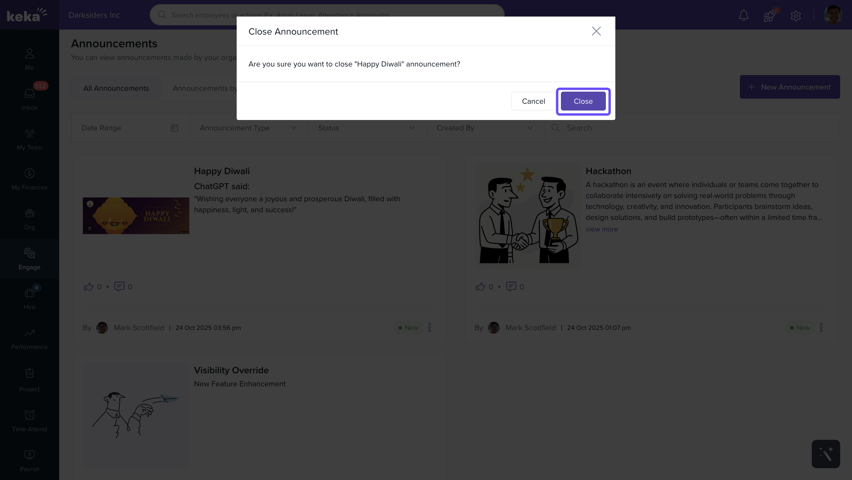Using Announcements in Keka keeps communication transparent and efficient—helping build a more engaged, informed workplace.