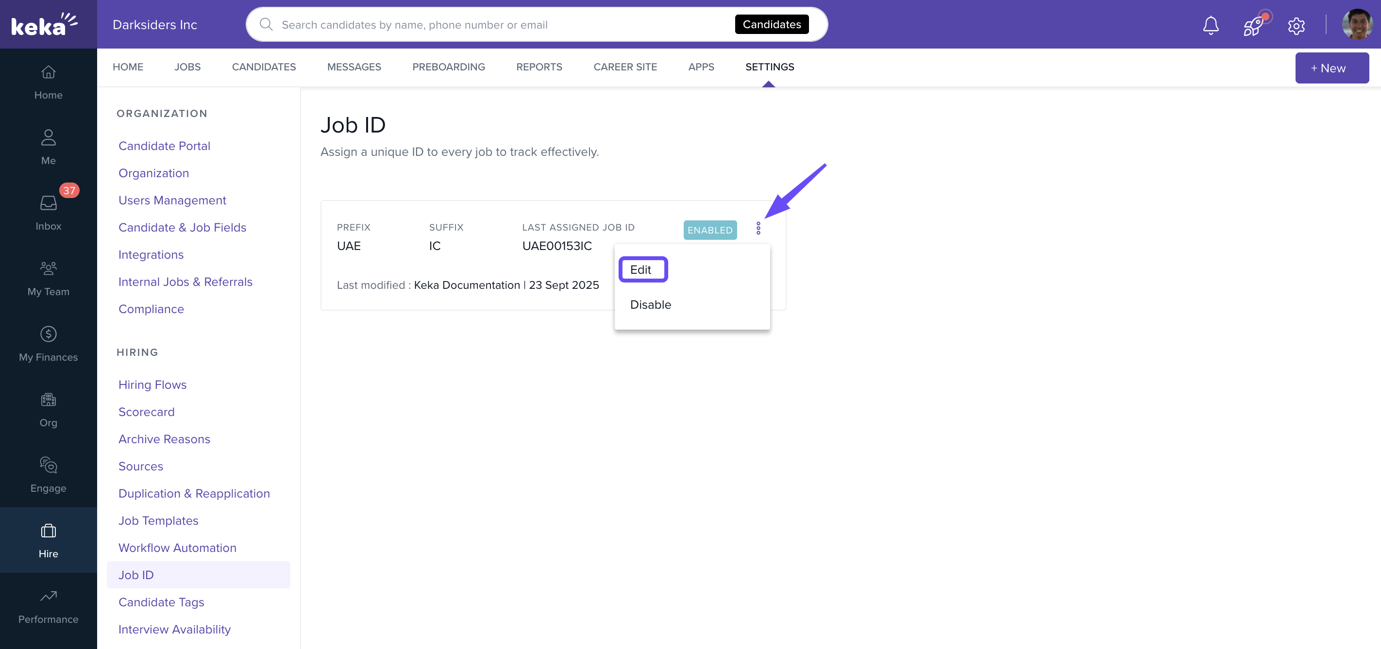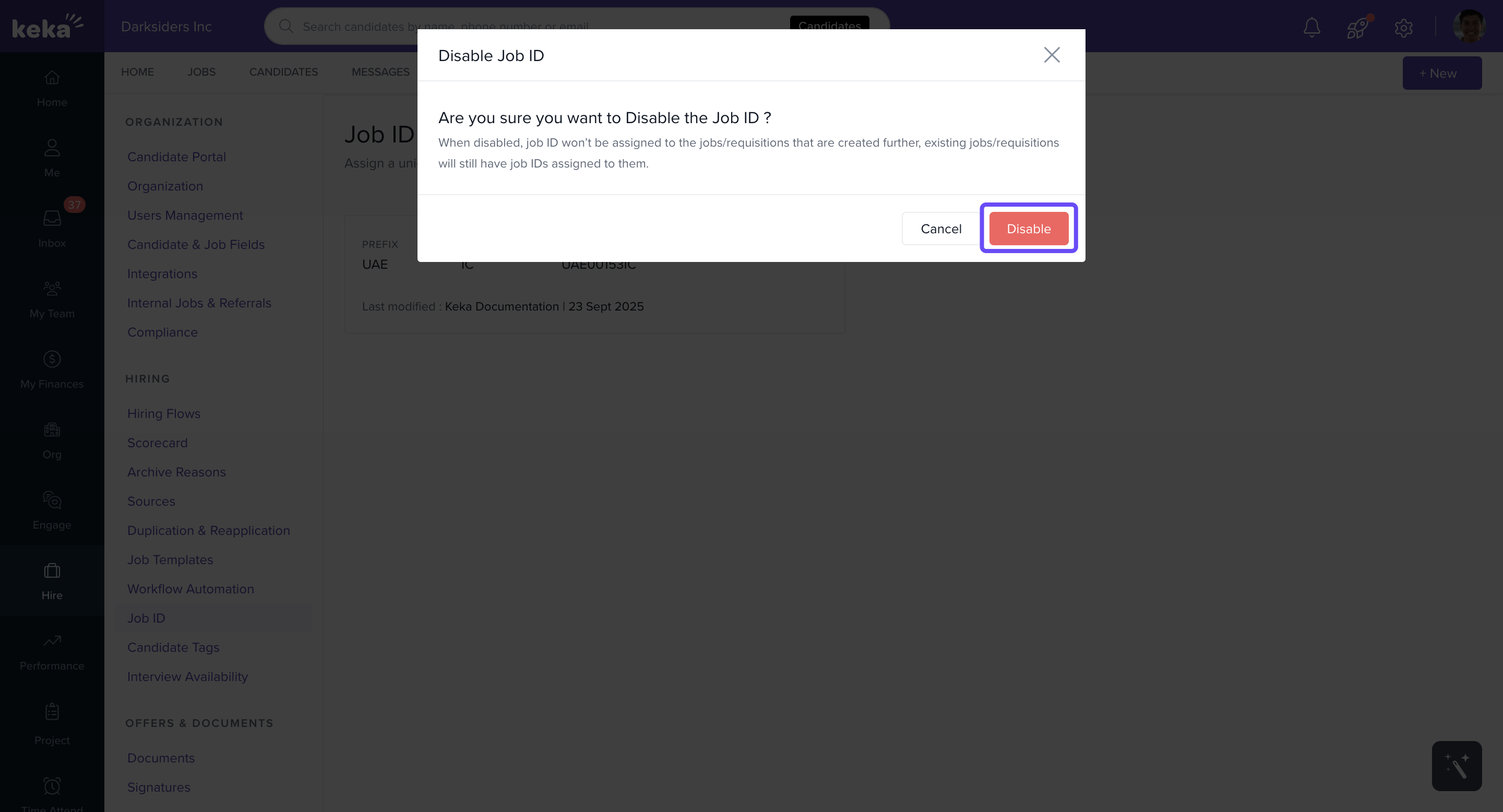 You can enable or disable the Job ID feature at any time, depending on your hiring needs.