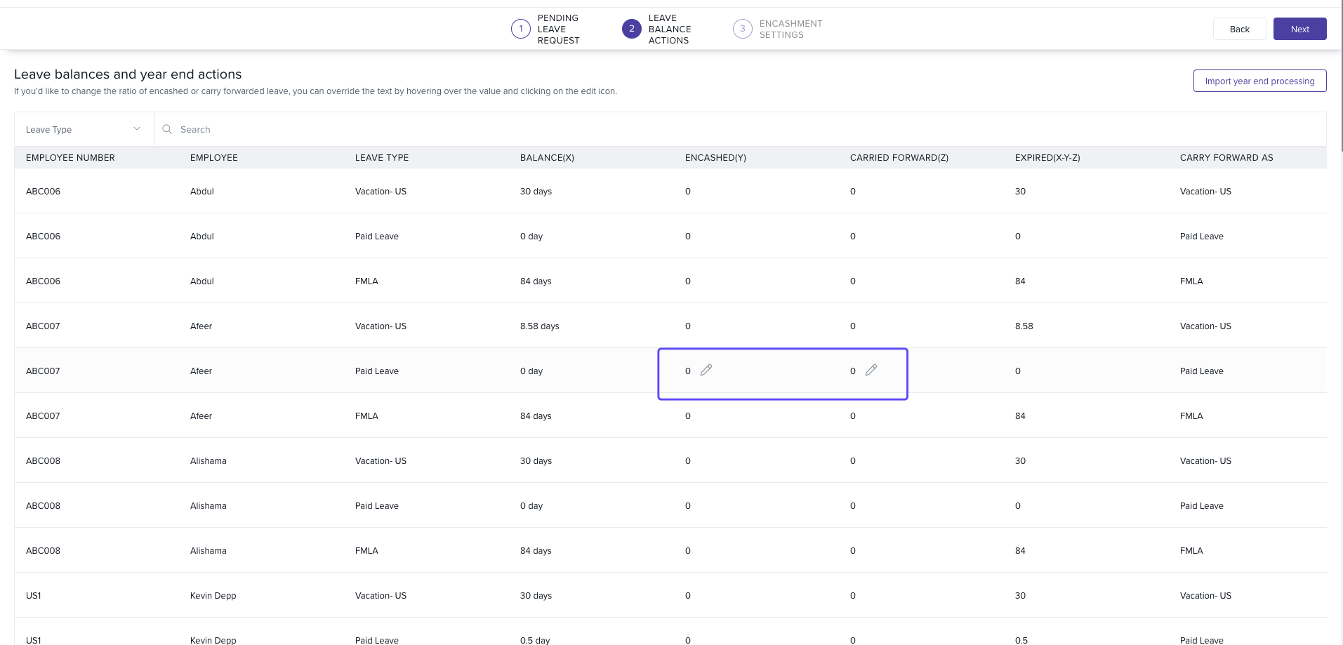 Avoid moving employees: Do not transfer employees between leave plans until YEP/LYP is complete, as this may cause balance errors.