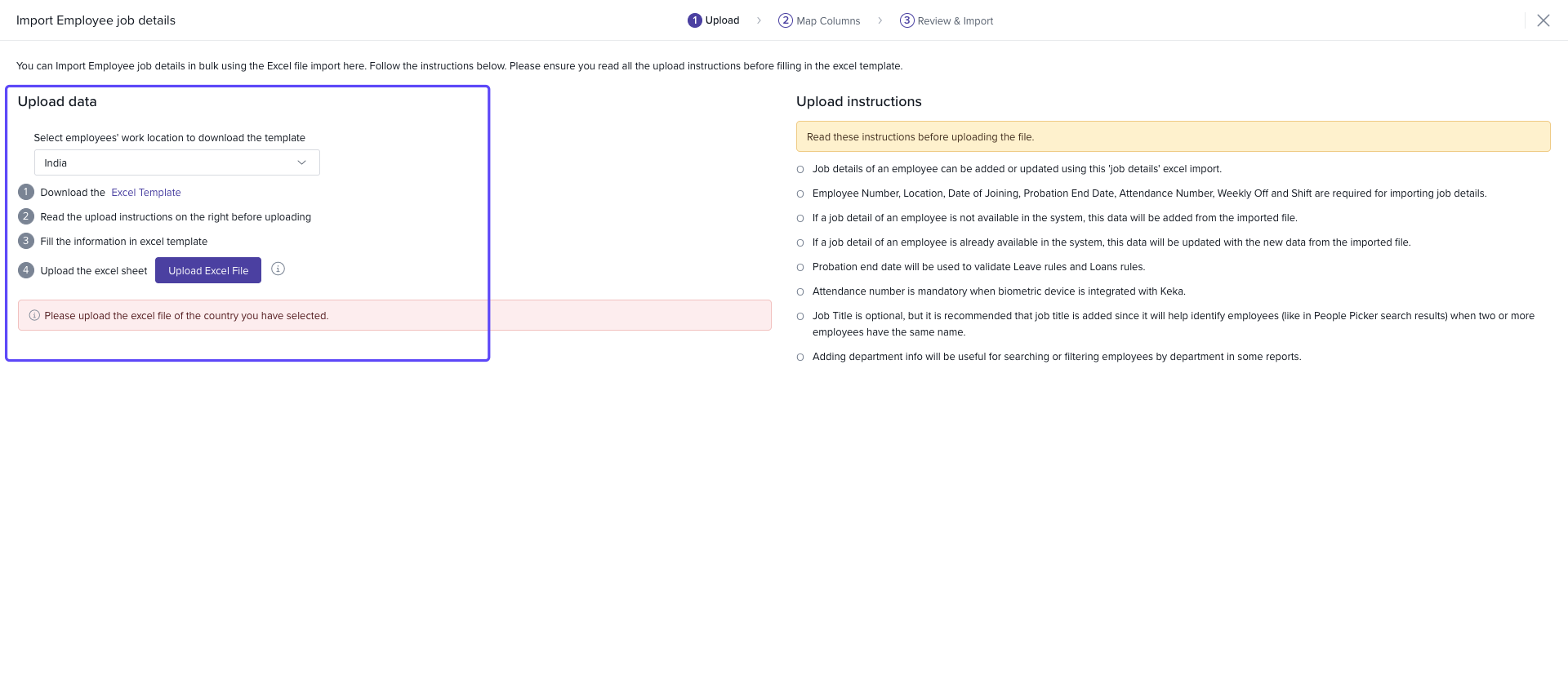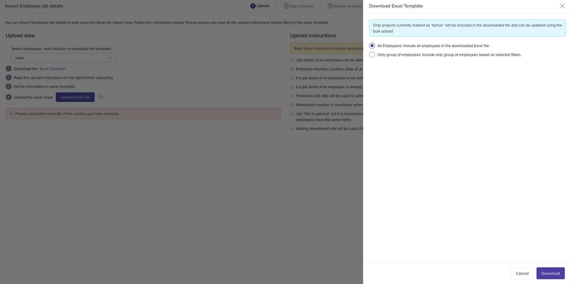 On the Import Employee Job Details screen, click on Download Excel Template.