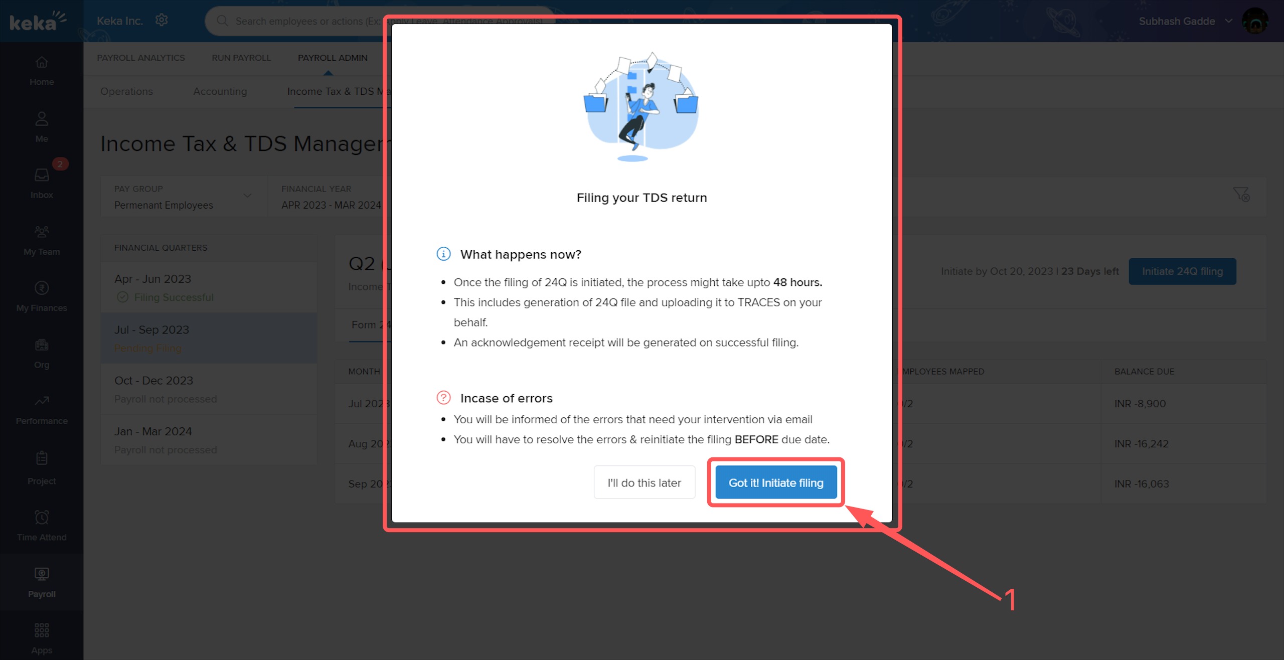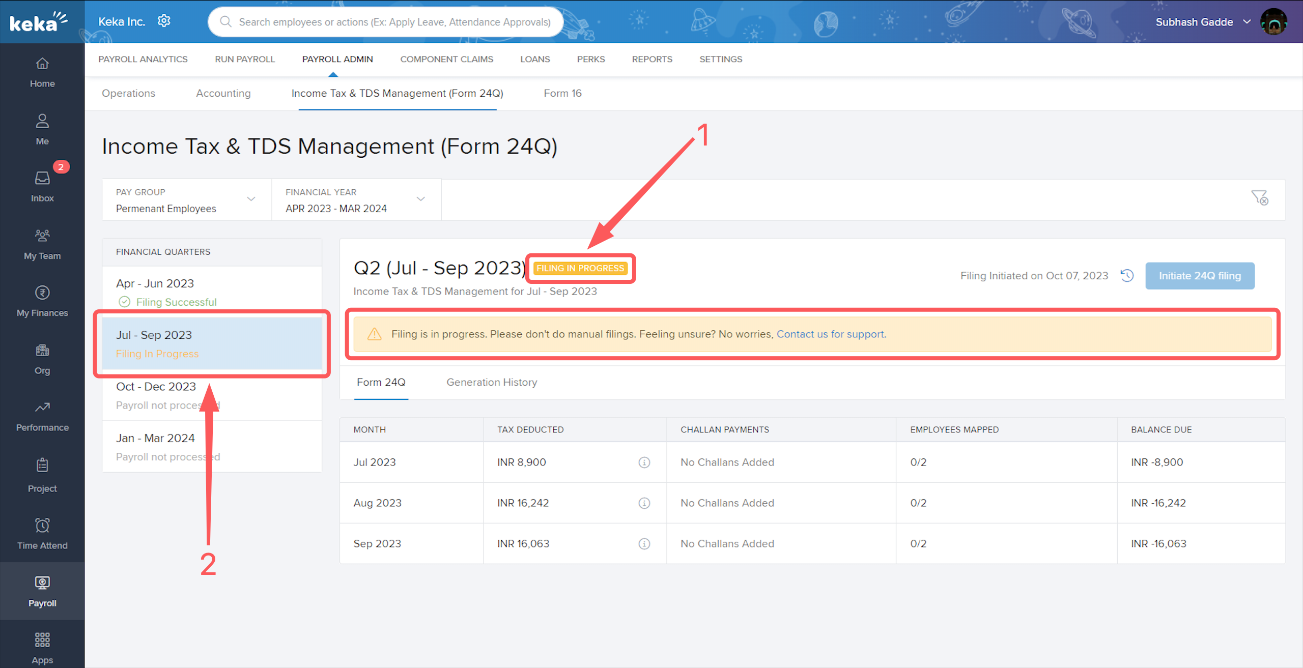 In this article we will discuss about how to automate your Form 24Q filings through Keka.