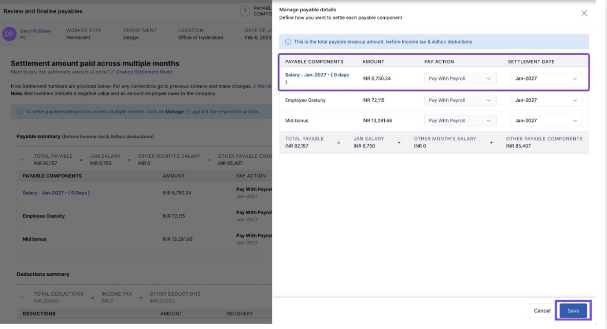 Important: Payroll must be locked for the settlement to proceed smoothly.