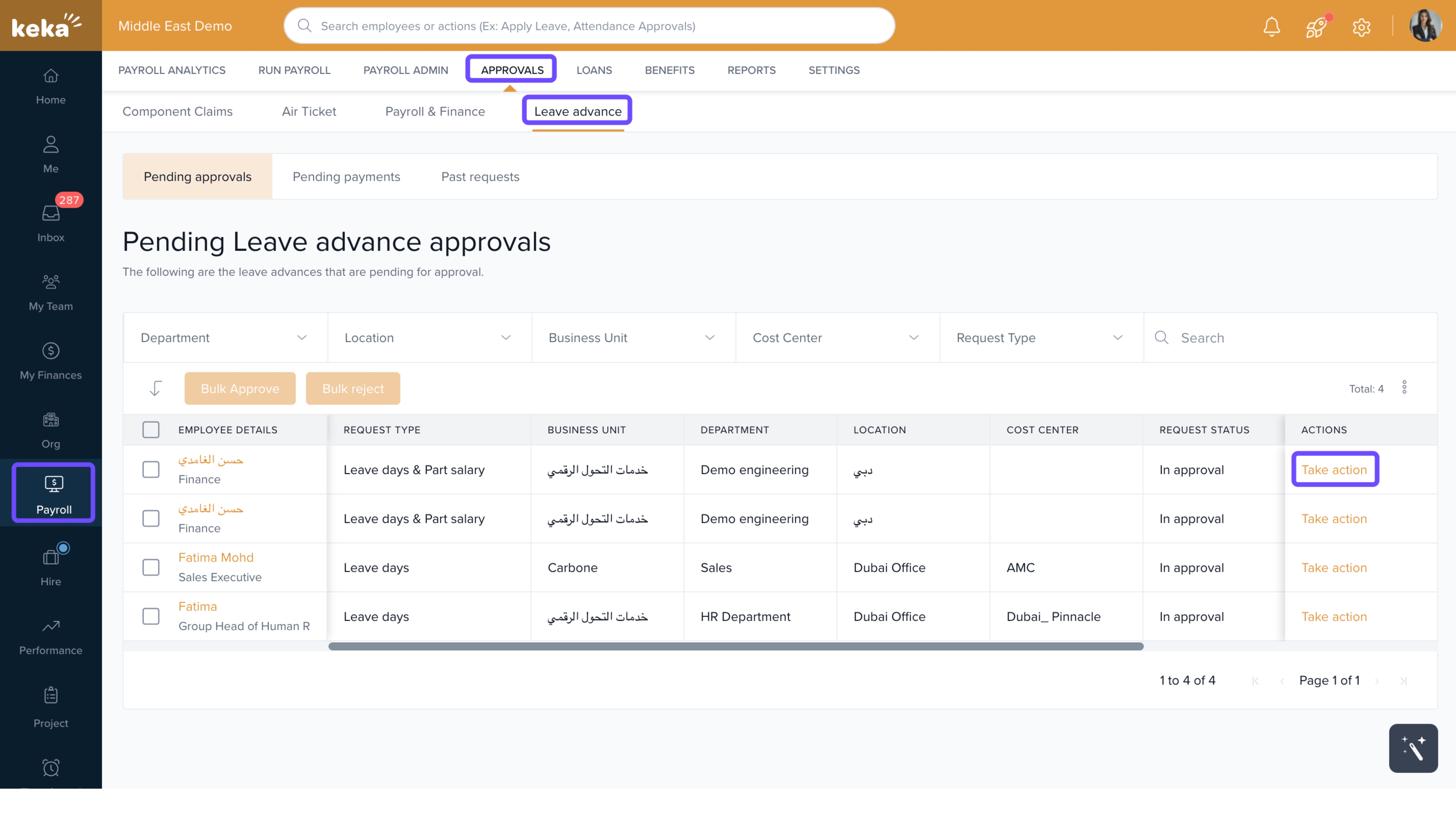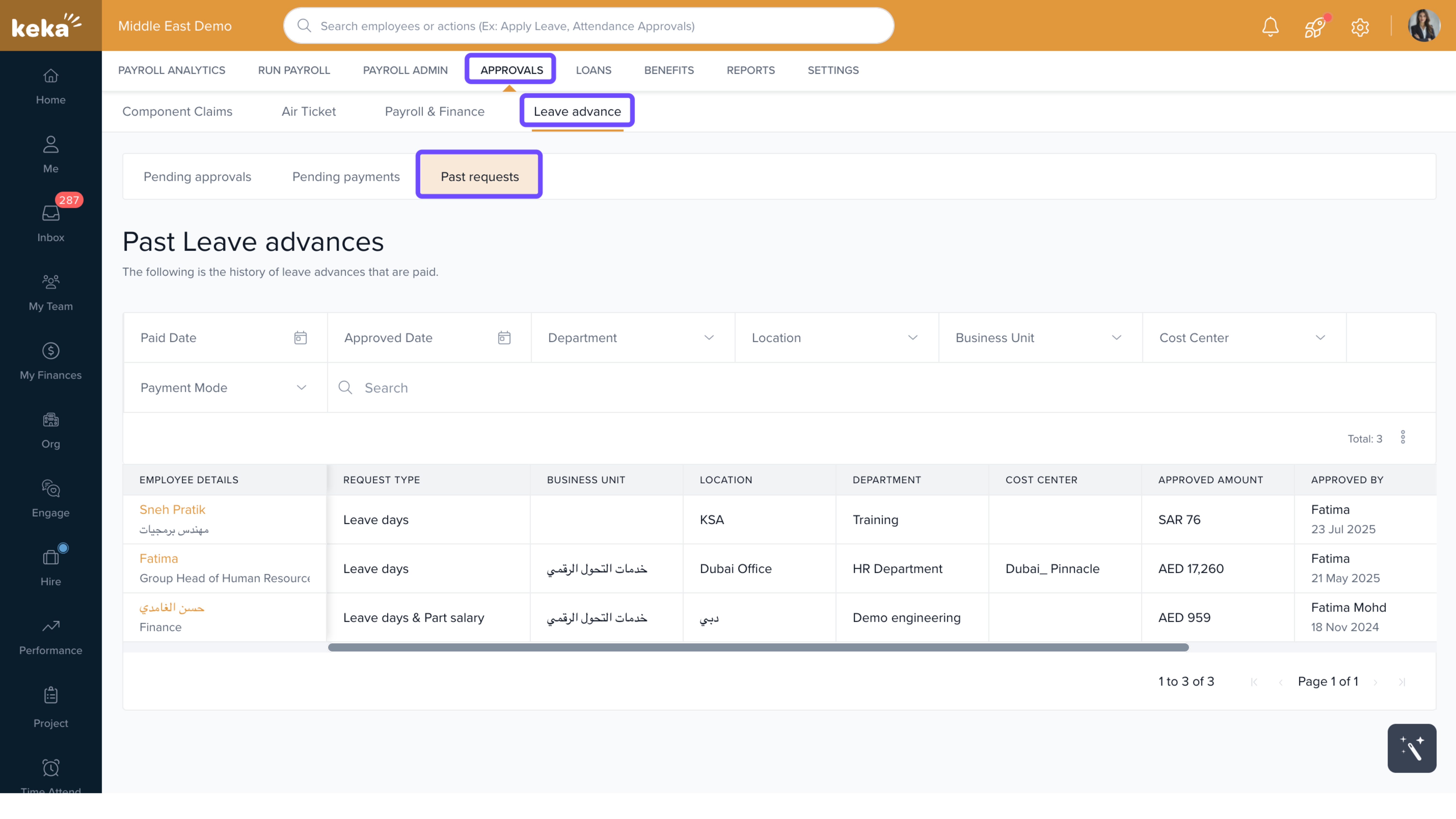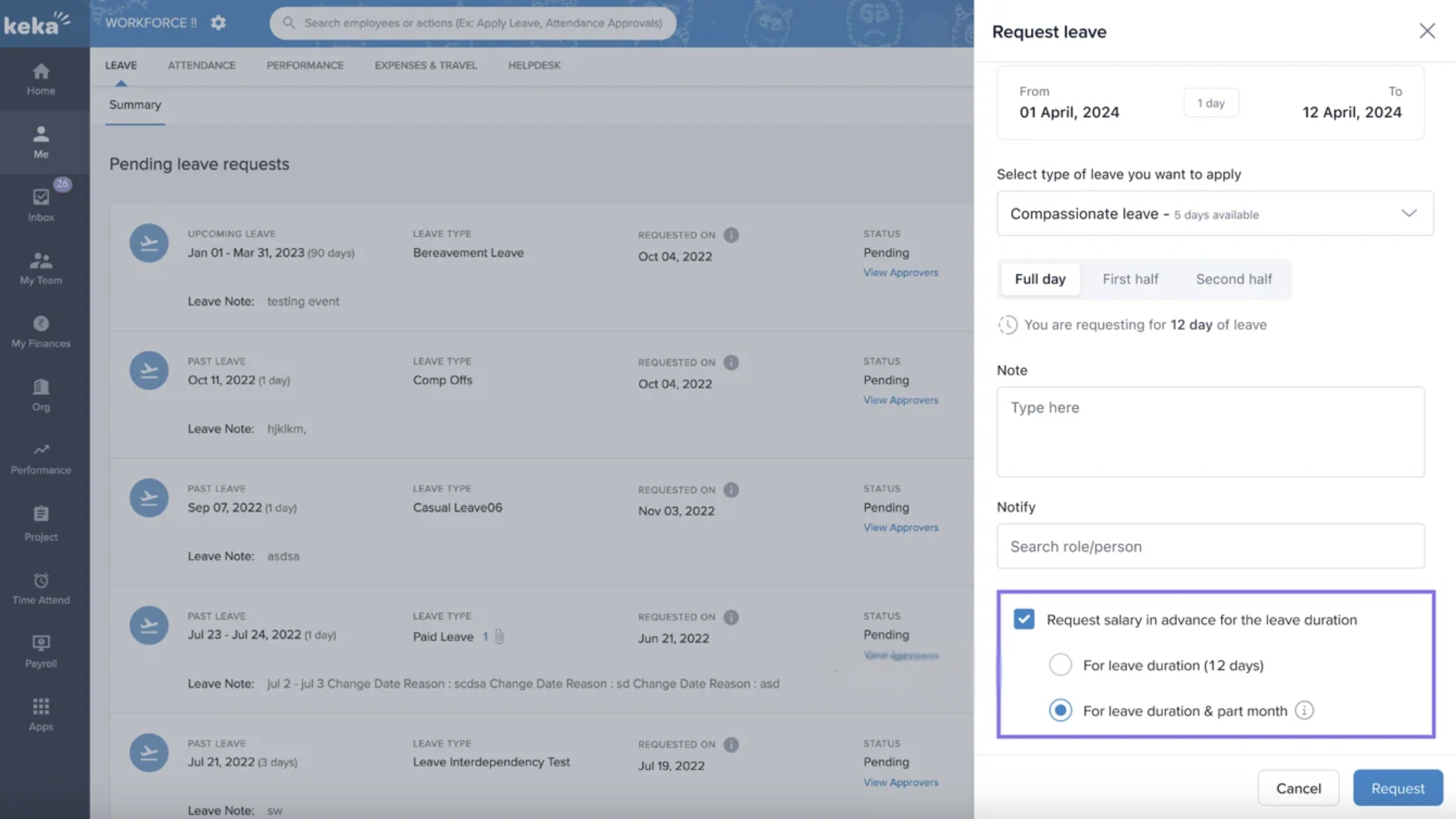 When applying for eligible leave, employees will see an option to request an advance salary.