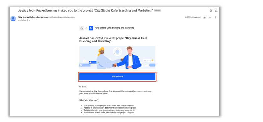 You can access the portal to view the project that you have been invited to. You will receive a magic link via email and clicking on 'Get Started' will take you to the Customer Portal.