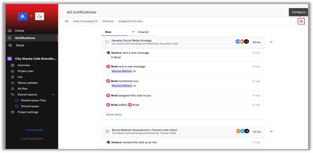 assigned to the you, mentions, and all the tasks related to your team.
