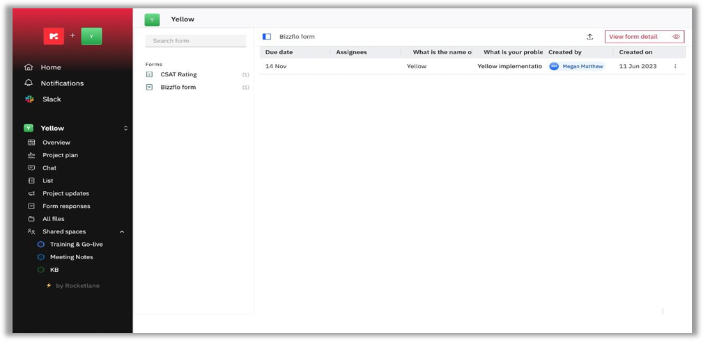 Displays the Form responses for the project that you have been added to.